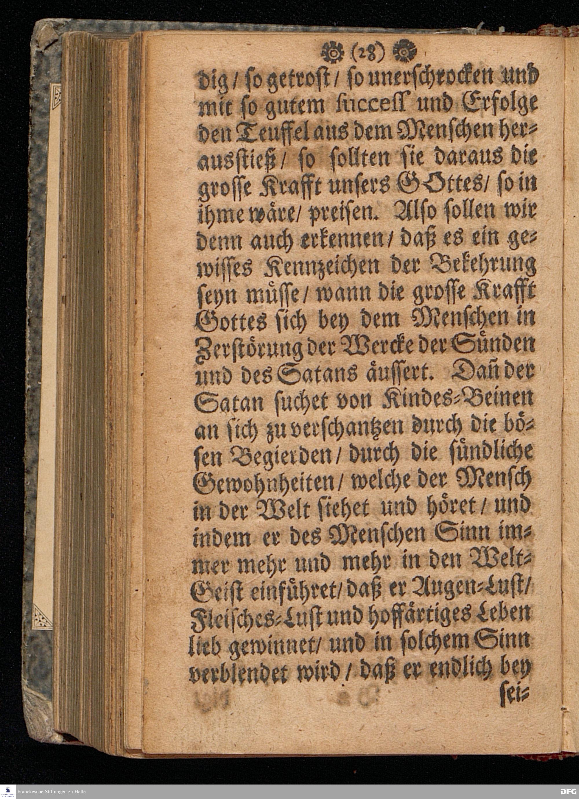 Der Untergang des Reichs des Satans in uns / als ein unbetrügliches Kennzeichen der wahren Bekehrung / Am Sonntag Oculi Anno 1699. In einer Predigt Uber das Evangelium Luc.XI, v.14--28. In der St.Georgen=Kirche zu Glaucha an Halle gehalten Und nunmehro zum andern mahl heraus gegeben von M.August Hermann Francken / S.S.Theol.P.Ord.& Past.Glauch. Halle / druckts Christ.Andreas Zeitler / Univ.Buchdr. 1702.