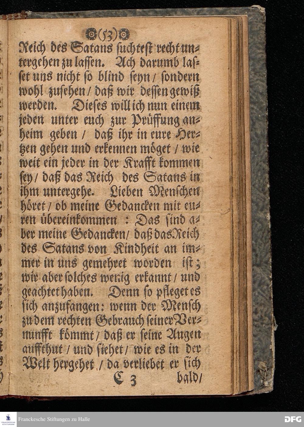 Der Untergang des Reichs des Satans in uns / als ein unbetrügliches Kennzeichen der wahren Bekehrung / Am Sonntag Oculi Anno 1699. In einer Predigt Uber das Evangelium Luc.XI, v.14--28. In der St.Georgen=Kirche zu Glaucha an Halle gehalten Und nunmehro zum andern mahl heraus gegeben von M.August Hermann Francken / S.S.Theol.P.Ord.& Past.Glauch. Halle / druckts Christ.Andreas Zeitler / Univ.Buchdr. 1702.