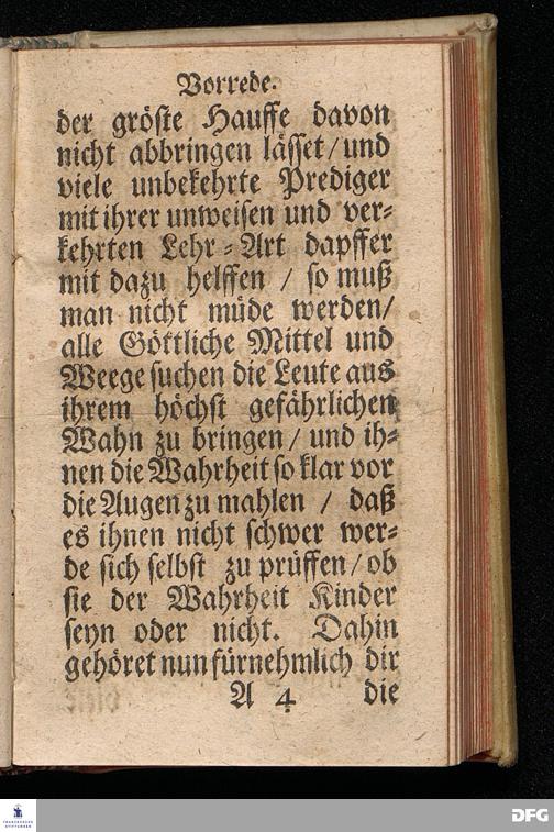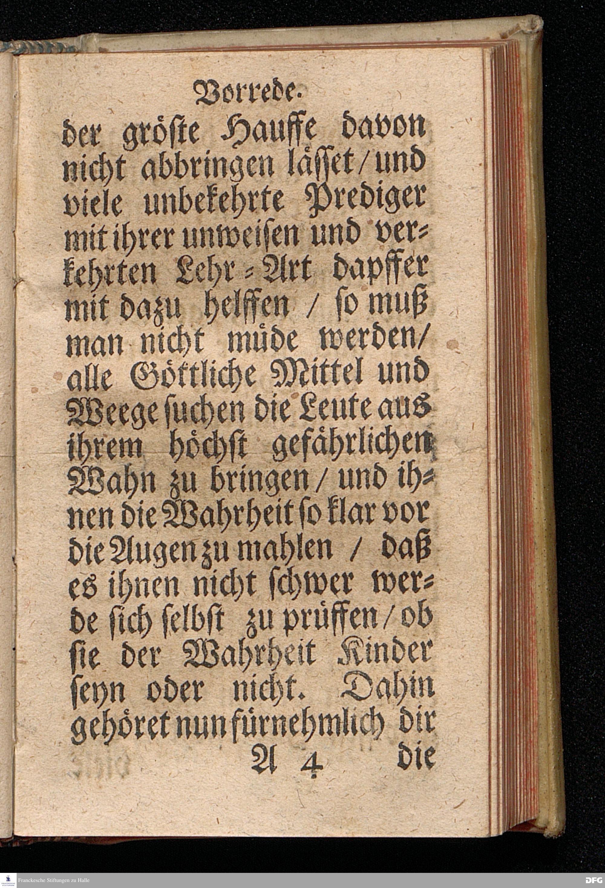 SPECULUM FIDEI, Das ist / Glaubens=Spiegel / Darinnen Ein jeglicher Mensch sich selbst geistlich beschauen / auch klärlich abnehmen und erkennen kann / ob er den wahren Christl.Glauben hat / oder nicht. In diesen letzten bösen Zeiten / da schier Glaube und Liebe gantz verloschen ist / zur Prüfung verfertiget Durch PHILALETHEM. Nebst einer Vorrede M. Augustus Hermañ Franckens / SS.Theol.Gr.& OO.LL.P.P.Ord.& P.Glauch. HALLE / Druckts Christian Henckel / 1699.