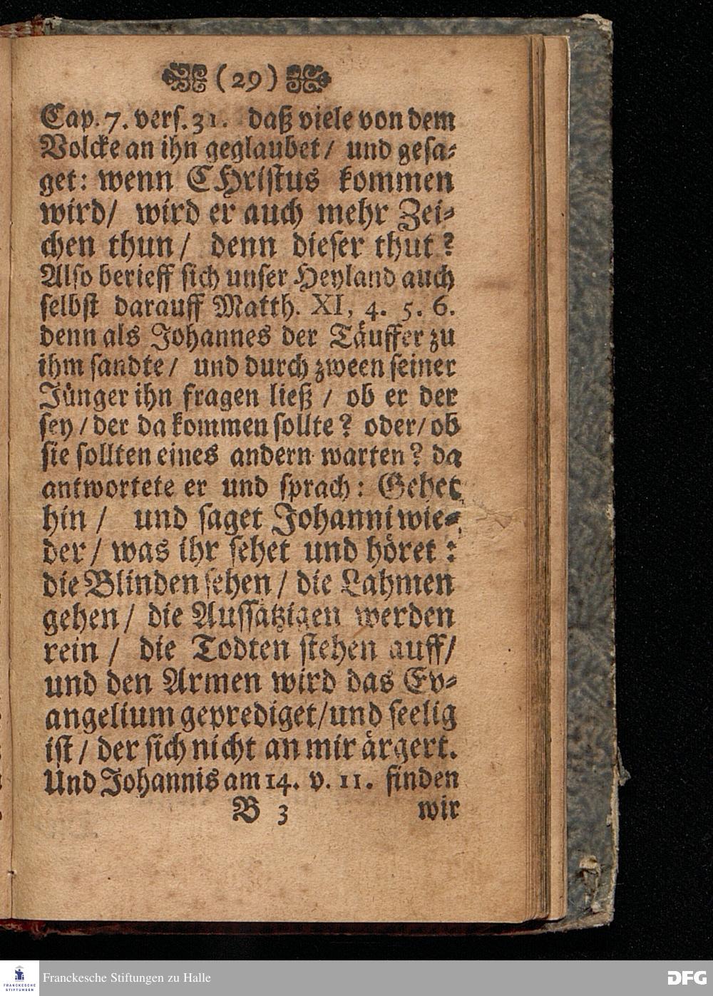 Der Wahre Prophet wer er sey / und wie er zu finden / Am Sonntage Lætare Anno 1699. In einer Predigt Uber das Evangelium Joh.VI, v.1--15. In der St.Georgen=Kirche zu Glaucha an Halle vorgestellet Und nunmehro zum andern mahl herausgegeben von M.August Hermann Francken / S.S.Theol.P.Ord.& Past.Glauch. HALLE / Gedruckt bey Christian Henckeln / 1702.