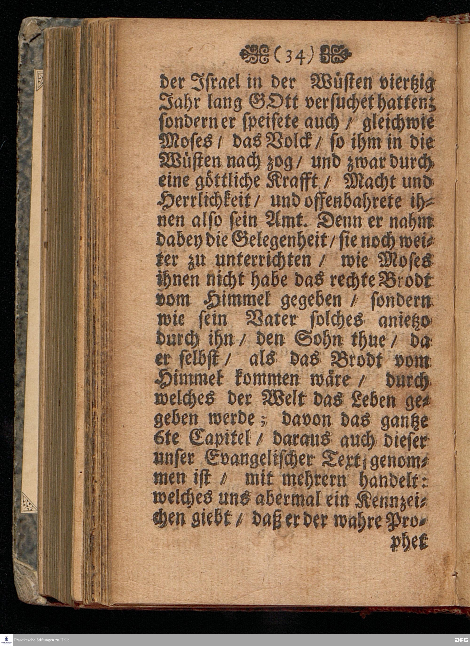 Der Wahre Prophet wer er sey / und wie er zu finden / Am Sonntage Lætare Anno 1699. In einer Predigt Uber das Evangelium Joh.VI, v.1--15. In der St.Georgen=Kirche zu Glaucha an Halle vorgestellet Und nunmehro zum andern mahl herausgegeben von M.August Hermann Francken / S.S.Theol.P.Ord.& Past.Glauch. HALLE / Gedruckt bey Christian Henckeln / 1702.