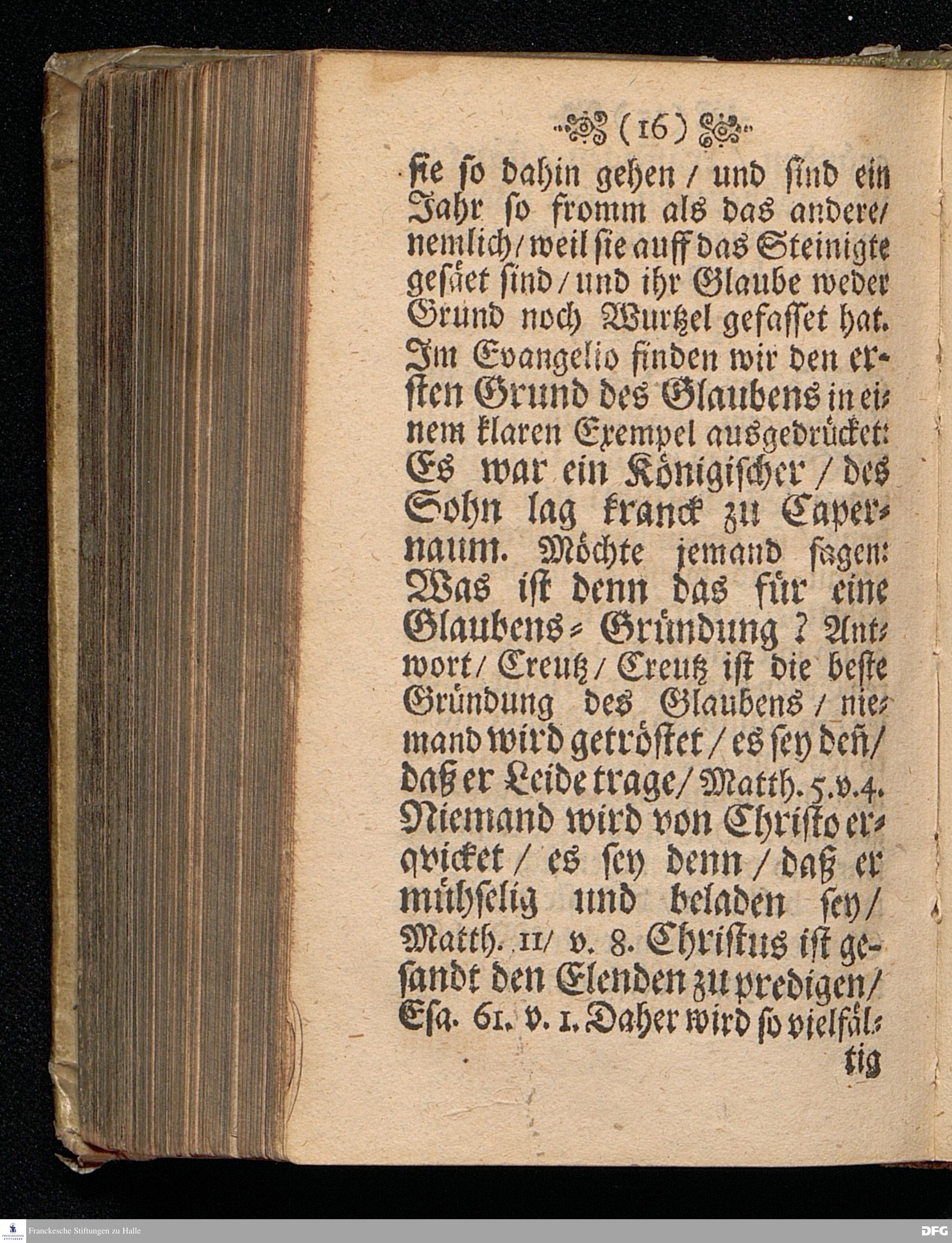 Die wahre Glaubens=Gründung / Kräfftigung / Stärckung / und Vollbereitung / In einer Predigt Aus dem Evangelio am XXI.Soñtage nach dem Feste der Heil.Drey=Einigkeit Johan.IV, V.47-54, ANNO 1691, Zu Halberstadt in der Kirchen zum Heil.Geiste öffentlich fürgetragen / und nunmehro zum vierdtenmal heraus gegeben von M.August Hermann Francken / Gr.& OO.LL.P.P.& P.Glauch. Halle / druckts Christian Henckel.