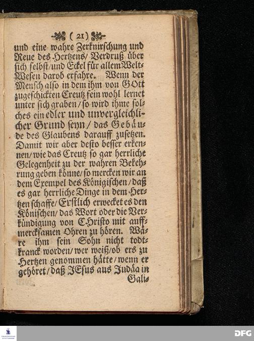 Die wahre Glaubens=Gründung / Kräfftigung / Stärckung / und Vollbereitung / In einer Predigt Aus dem Evangelio am XXI.Soñtage nach dem Feste der Heil.Drey=Einigkeit Johan.IV, V.47-54, ANNO 1691, Zu Halberstadt in der Kirchen zum Heil.Geiste öffentlich fürgetragen / und nunmehro zum vierdtenmal heraus gegeben von M.August Hermann Francken / Gr.& OO.LL.P.P.& P.Glauch. Halle / druckts Christian Henckel.