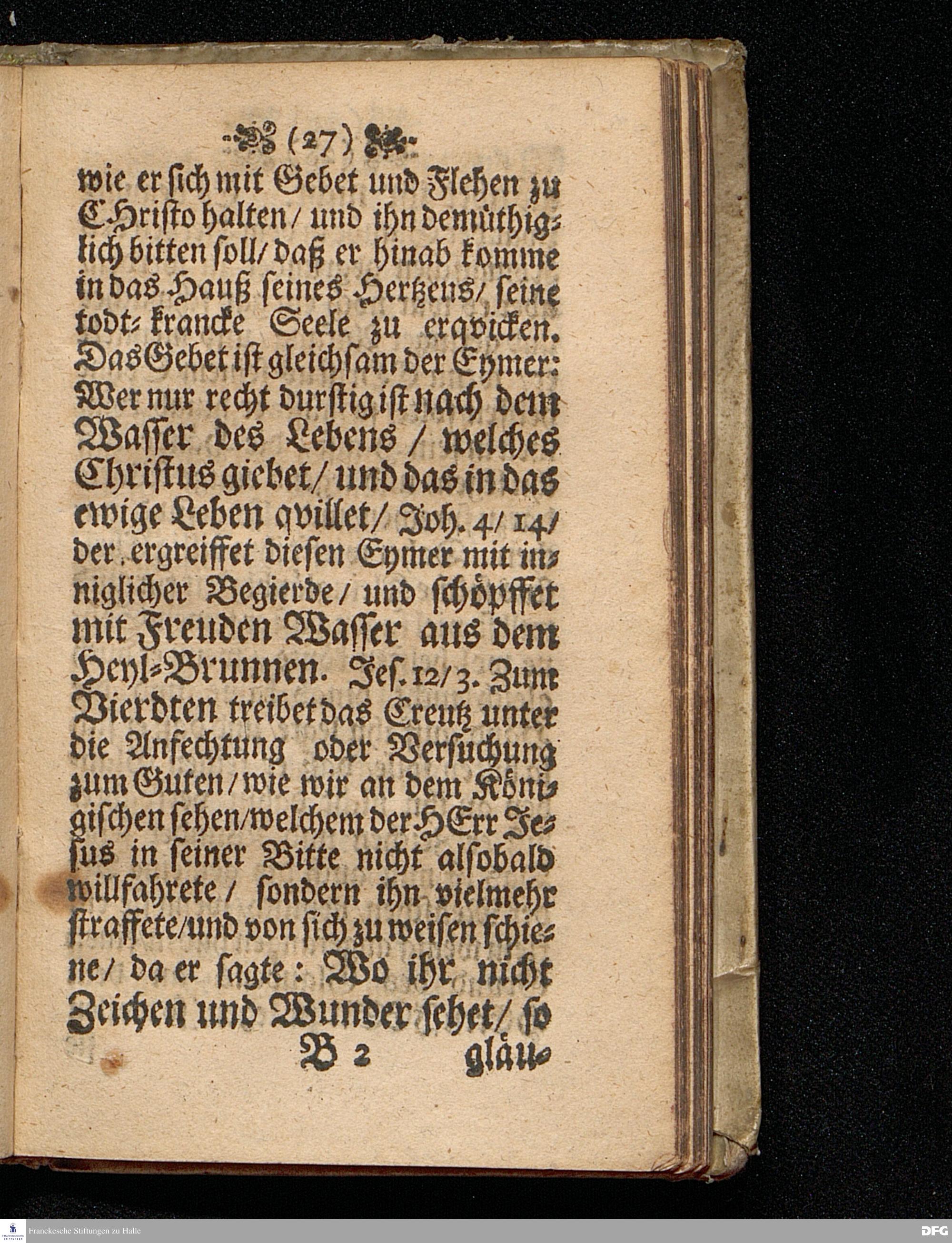 Die wahre Glaubens=Gründung / Kräfftigung / Stärckung / und Vollbereitung / In einer Predigt Aus dem Evangelio am XXI.Soñtage nach dem Feste der Heil.Drey=Einigkeit Johan.IV, V.47-54, ANNO 1691, Zu Halberstadt in der Kirchen zum Heil.Geiste öffentlich fürgetragen / und nunmehro zum vierdtenmal heraus gegeben von M.August Hermann Francken / Gr.& OO.LL.P.P.& P.Glauch. Halle / druckts Christian Henckel.