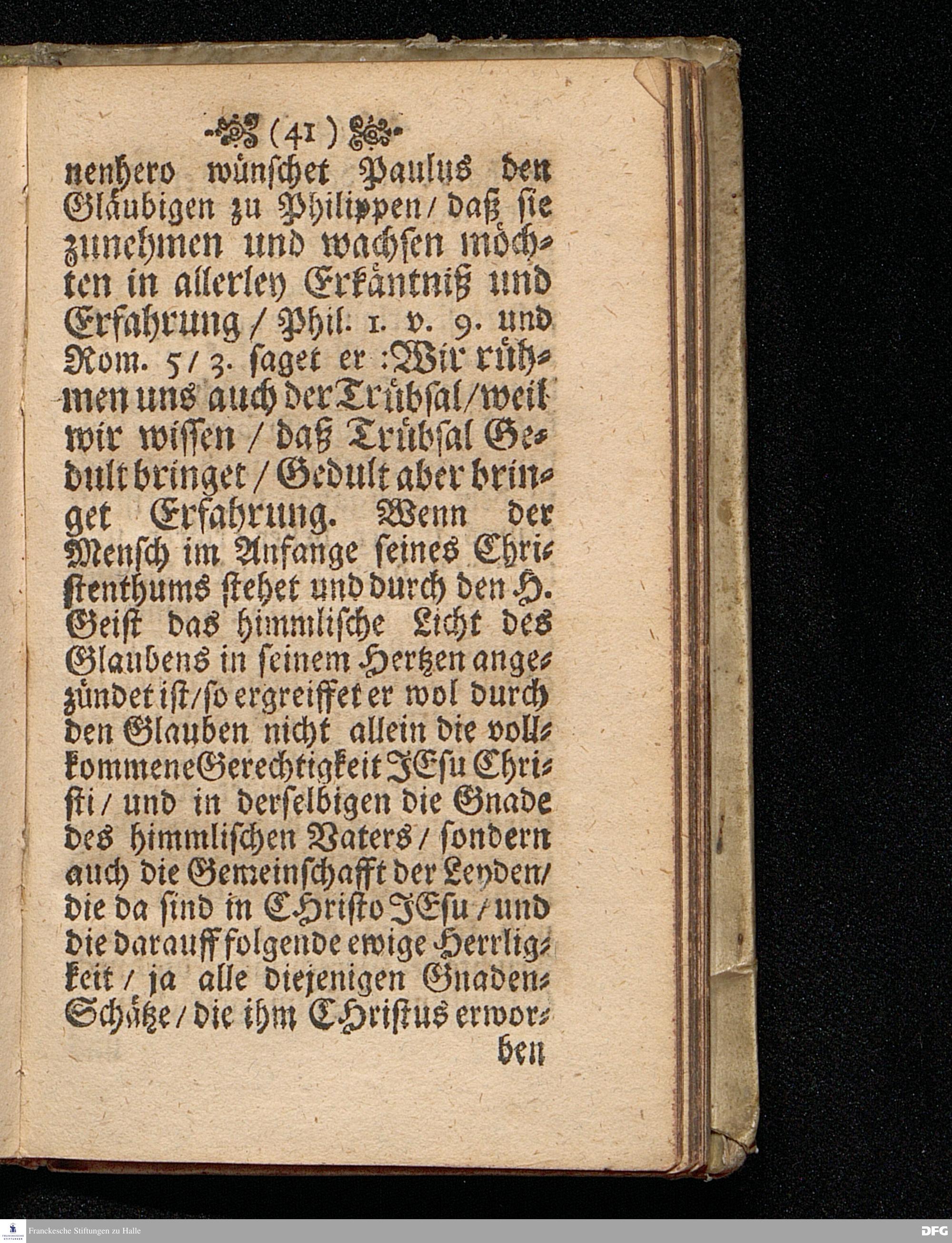 Die wahre Glaubens=Gründung / Kräfftigung / Stärckung / und Vollbereitung / In einer Predigt Aus dem Evangelio am XXI.Soñtage nach dem Feste der Heil.Drey=Einigkeit Johan.IV, V.47-54, ANNO 1691, Zu Halberstadt in der Kirchen zum Heil.Geiste öffentlich fürgetragen / und nunmehro zum vierdtenmal heraus gegeben von M.August Hermann Francken / Gr.& OO.LL.P.P.& P.Glauch. Halle / druckts Christian Henckel.