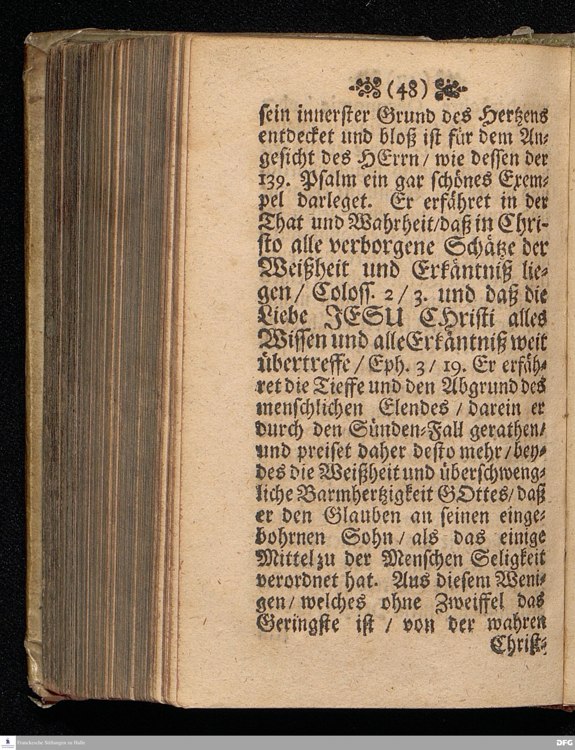 Die wahre Glaubens=Gründung / Kräfftigung / Stärckung / und Vollbereitung / In einer Predigt Aus dem Evangelio am XXI.Soñtage nach dem Feste der Heil.Drey=Einigkeit Johan.IV, V.47-54, ANNO 1691, Zu Halberstadt in der Kirchen zum Heil.Geiste öffentlich fürgetragen / und nunmehro zum vierdtenmal heraus gegeben von M.August Hermann Francken / Gr.& OO.LL.P.P.& P.Glauch. Halle / druckts Christian Henckel.