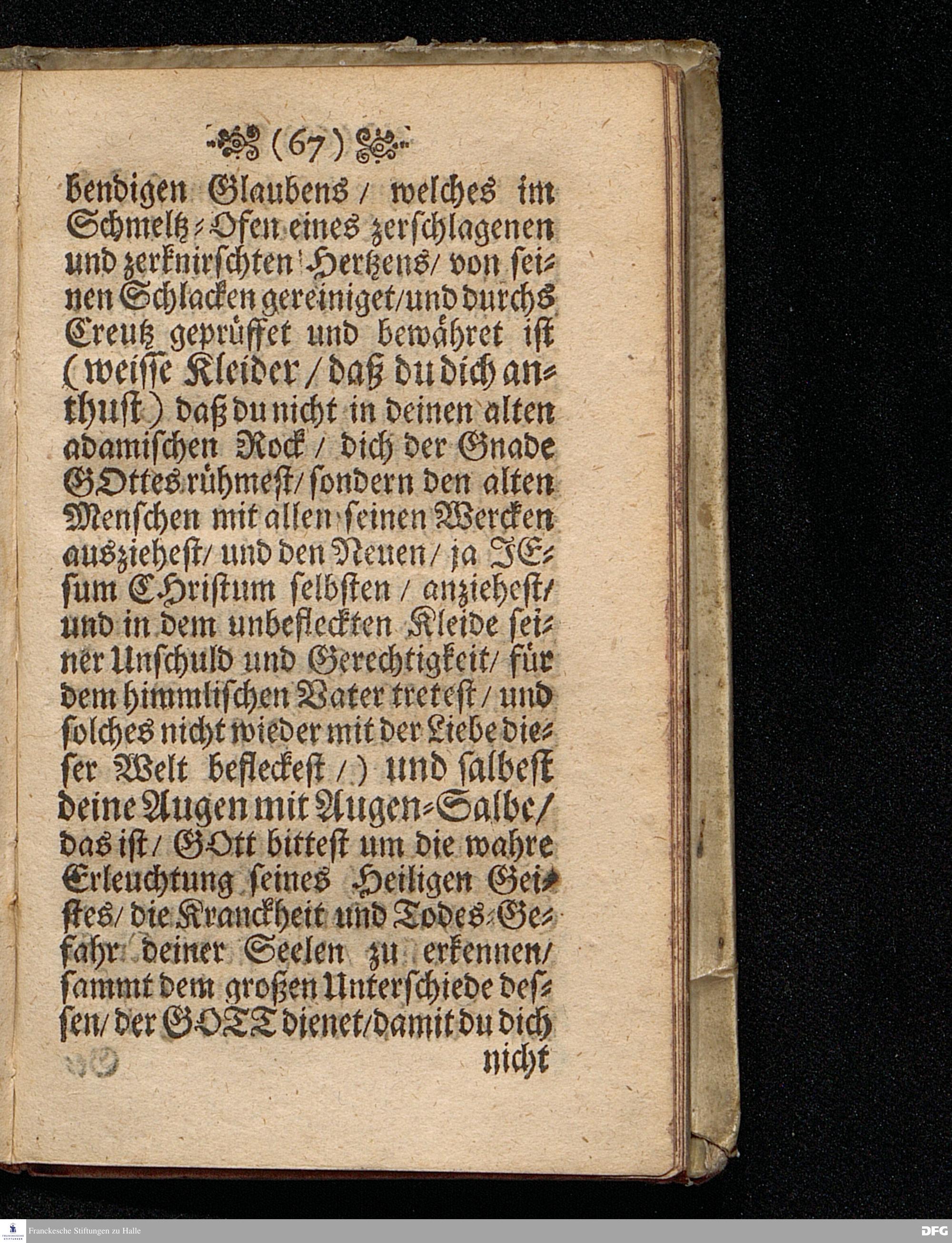 Die wahre Glaubens=Gründung / Kräfftigung / Stärckung / und Vollbereitung / In einer Predigt Aus dem Evangelio am XXI.Soñtage nach dem Feste der Heil.Drey=Einigkeit Johan.IV, V.47-54, ANNO 1691, Zu Halberstadt in der Kirchen zum Heil.Geiste öffentlich fürgetragen / und nunmehro zum vierdtenmal heraus gegeben von M.August Hermann Francken / Gr.& OO.LL.P.P.& P.Glauch. Halle / druckts Christian Henckel.