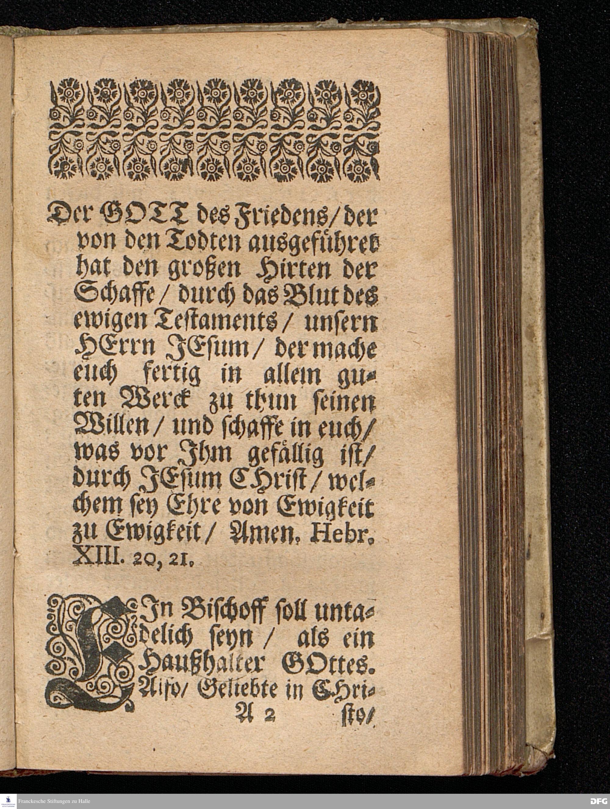 Predigt Von dem Dienst Untreuer Lehrer / Uber das Evangelium Joh.X, 1==11. Am Pfingst=Dienstage Anno 1698, In der St.Georgen=Kirche zu Glaucha an Halle gehalten von M.August Hermann Francken / Gr.& OO.LL.P.P.& P.Glauch. HALLE / Gedruckt bey Christian Henckel / 1698.