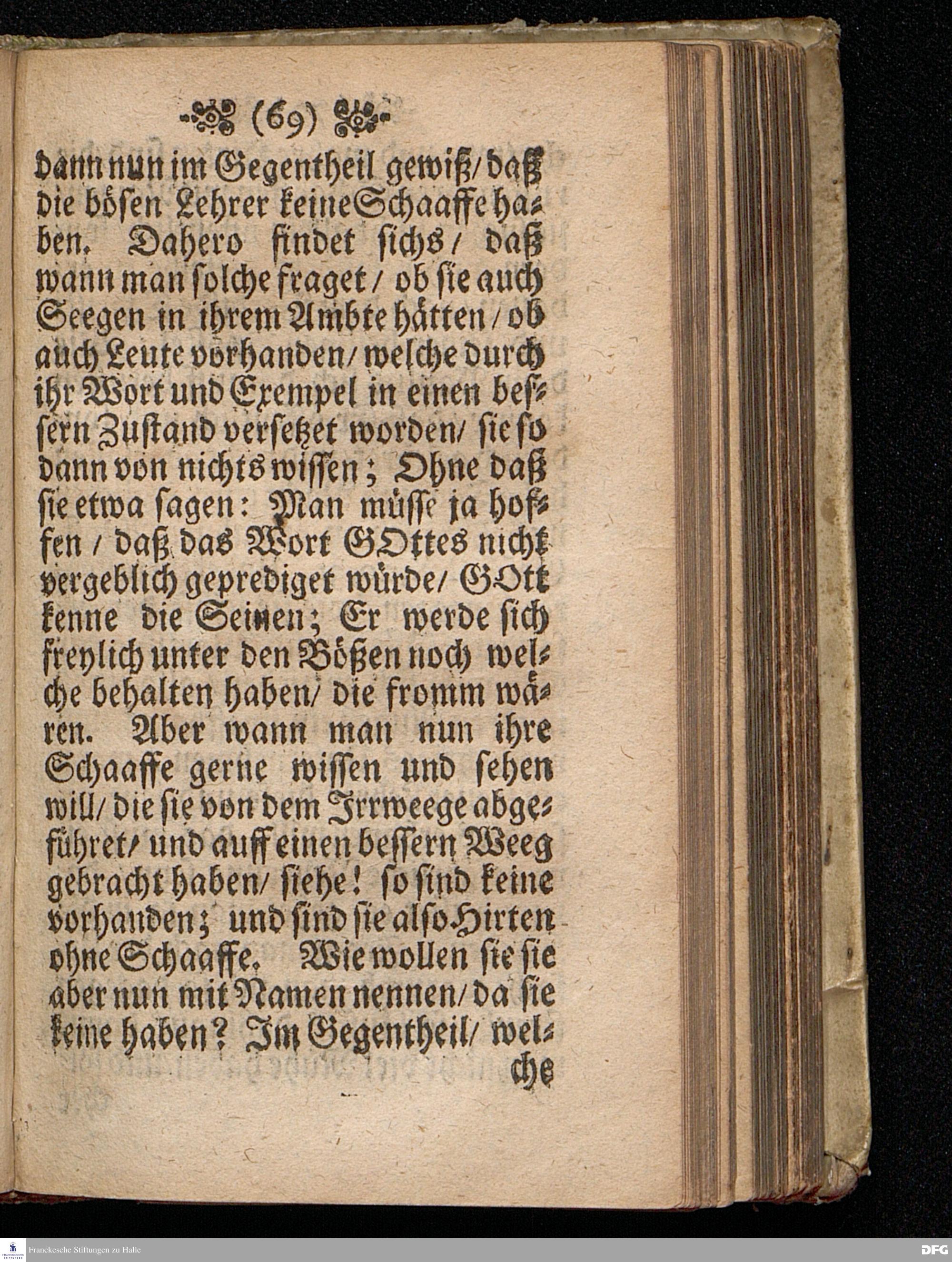 Predigt Von dem Dienst Untreuer Lehrer / Uber das Evangelium Joh.X, 1==11. Am Pfingst=Dienstage Anno 1698, In der St.Georgen=Kirche zu Glaucha an Halle gehalten von M.August Hermann Francken / Gr.& OO.LL.P.P.& P.Glauch. HALLE / Gedruckt bey Christian Henckel / 1698.