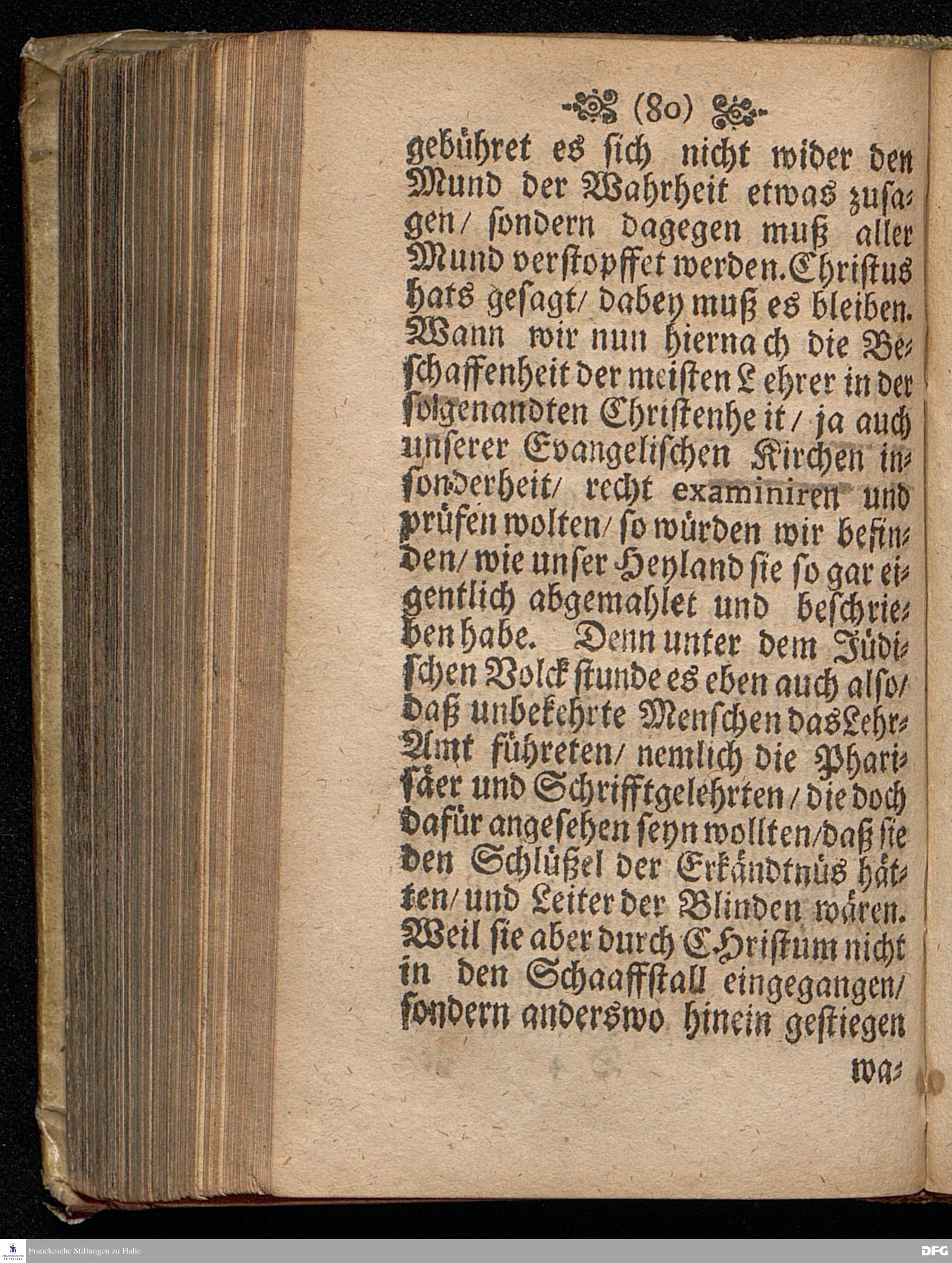 Predigt Von dem Dienst Untreuer Lehrer / Uber das Evangelium Joh.X, 1==11. Am Pfingst=Dienstage Anno 1698, In der St.Georgen=Kirche zu Glaucha an Halle gehalten von M.August Hermann Francken / Gr.& OO.LL.P.P.& P.Glauch. HALLE / Gedruckt bey Christian Henckel / 1698.
