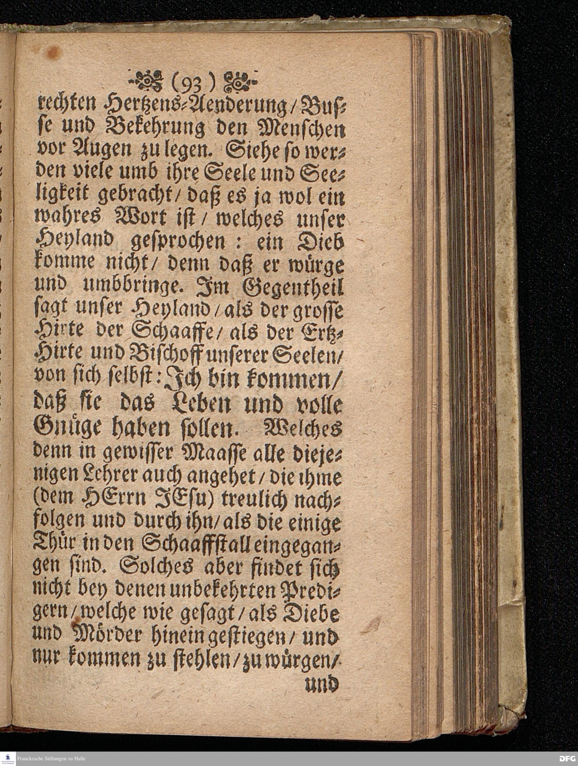 Predigt Von dem Dienst Untreuer Lehrer / Uber das Evangelium Joh.X, 1==11. Am Pfingst=Dienstage Anno 1698, In der St.Georgen=Kirche zu Glaucha an Halle gehalten von M.August Hermann Francken / Gr.& OO.LL.P.P.& P.Glauch. HALLE / Gedruckt bey Christian Henckel / 1698.