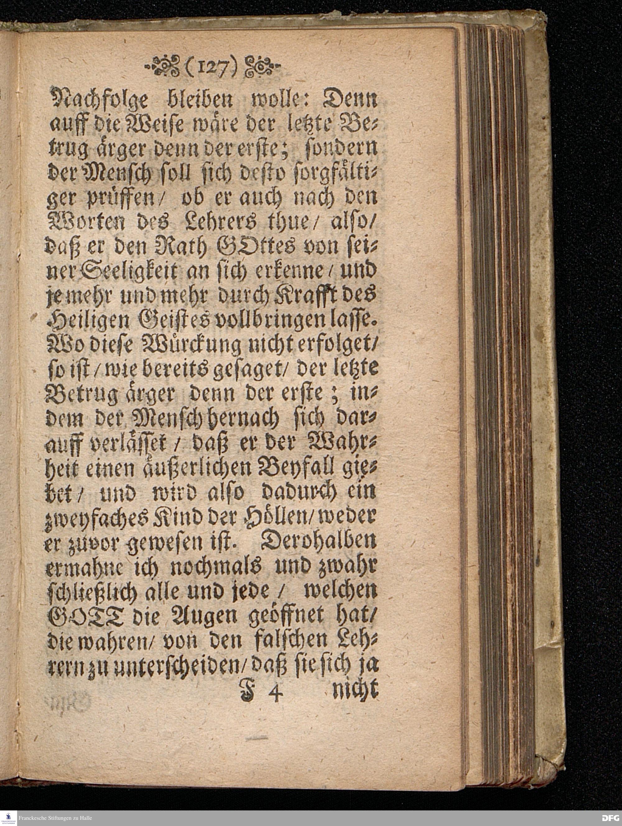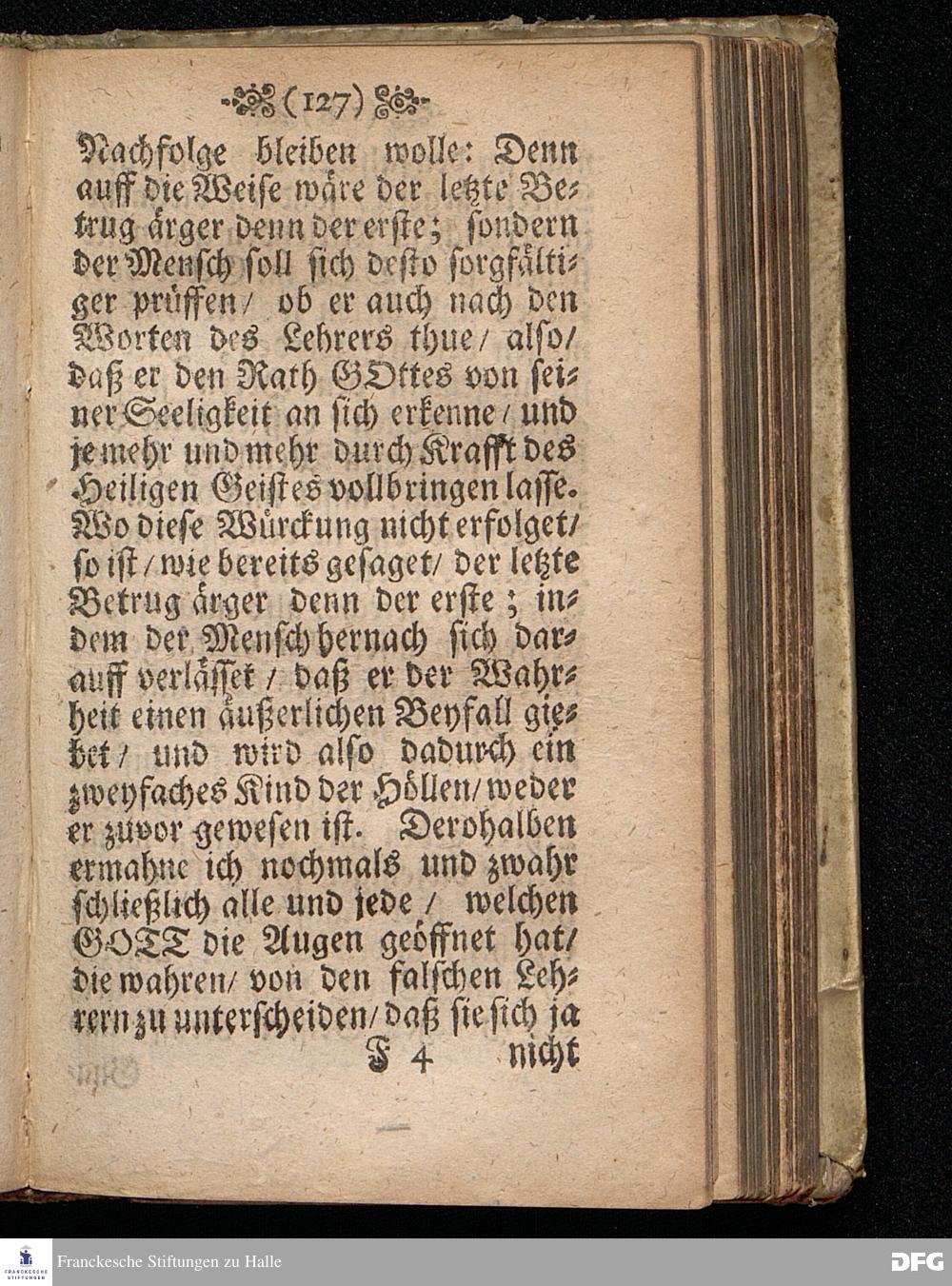 Predigt Von dem Dienst Untreuer Lehrer / Uber das Evangelium Joh.X, 1==11. Am Pfingst=Dienstage Anno 1698, In der St.Georgen=Kirche zu Glaucha an Halle gehalten von M.August Hermann Francken / Gr.& OO.LL.P.P.& P.Glauch. HALLE / Gedruckt bey Christian Henckel / 1698.