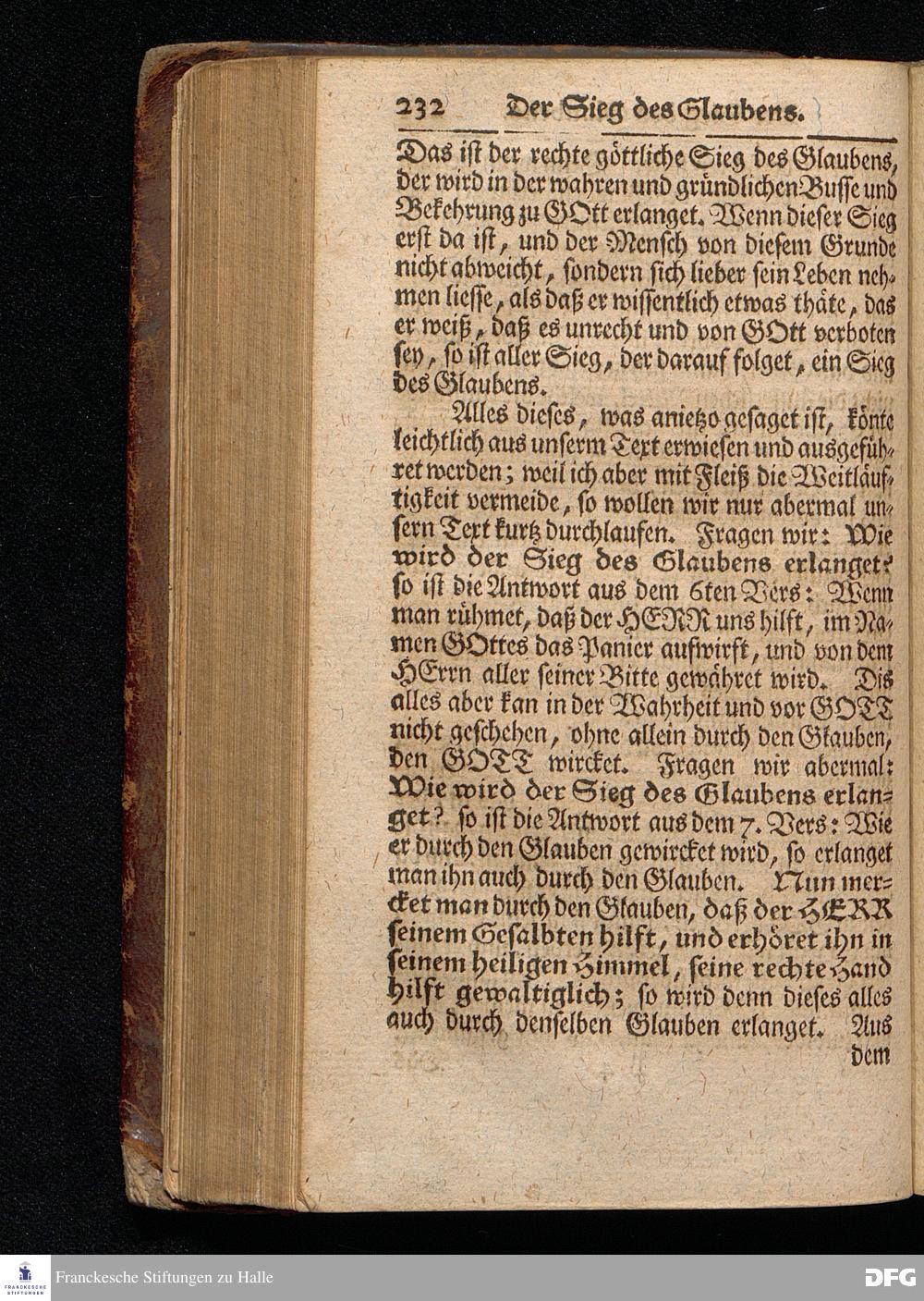 August Hermann Franckens, S.Theol.Prof.& Past. zu St.Ulrich, und des Gymnasii Scholarchæ, Kurtze Sonn= und Fest=Tags=Predigten / Darinnen Vornemlich zum wahren, lebendigen, Kraft=vollen und in guten Früchten sich beweisenden Glauben, die nöthige Aufweckung und Anweisung gegeben wird. Die fünfte EDITION. Mit einer neuen Vorrede und einem Register versehen. HALLE, in Verlegung des Wäysen=Hause MDCCXXXV.