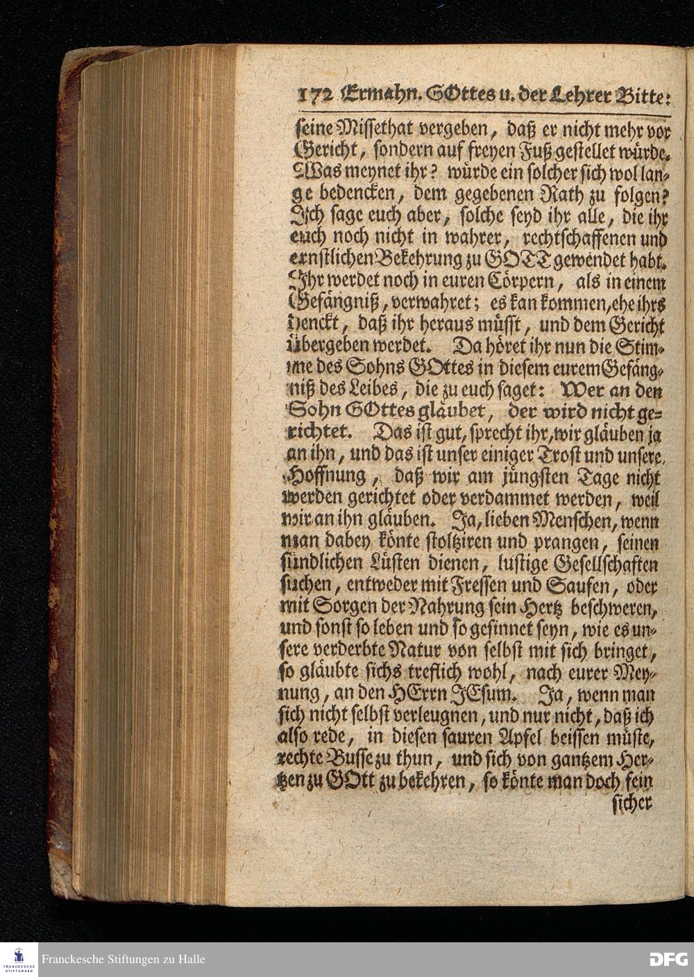 August Hermann Franckens, S.Theol.Prof.& Past. zu St.Ulrich, und des Gymnasii Scholarchæ, Kurtze Sonn= und Fest=Tags=Predigten / Darinnen Vornemlich zum wahren, lebendigen, Kraft=vollen und in guten Früchten sich beweisenden Glauben, die nöthige Aufweckung und Anweisung gegeben wird. Die fünfte EDITION. Mit einer neuen Vorrede und einem Register versehen. HALLE, in Verlegung des Wäysen=Hause MDCCXXXV.