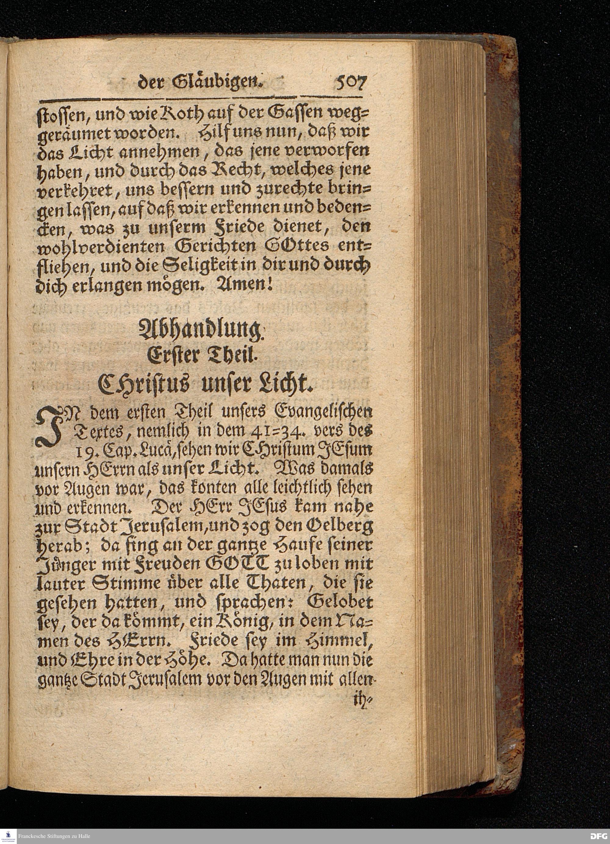 August Hermann Franckens, S.Theol.Prof.& Past. zu St.Ulrich, und des Gymnasii Scholarchæ, Kurtze Sonn= und Fest=Tags=Predigten / Darinnen Vornemlich zum wahren, lebendigen, Kraft=vollen und in guten Früchten sich beweisenden Glauben, die nöthige Aufweckung und Anweisung gegeben wird. Die fünfte EDITION. Mit einer neuen Vorrede und einem Register versehen. HALLE, in Verlegung des Wäysen=Hause MDCCXXXV.
