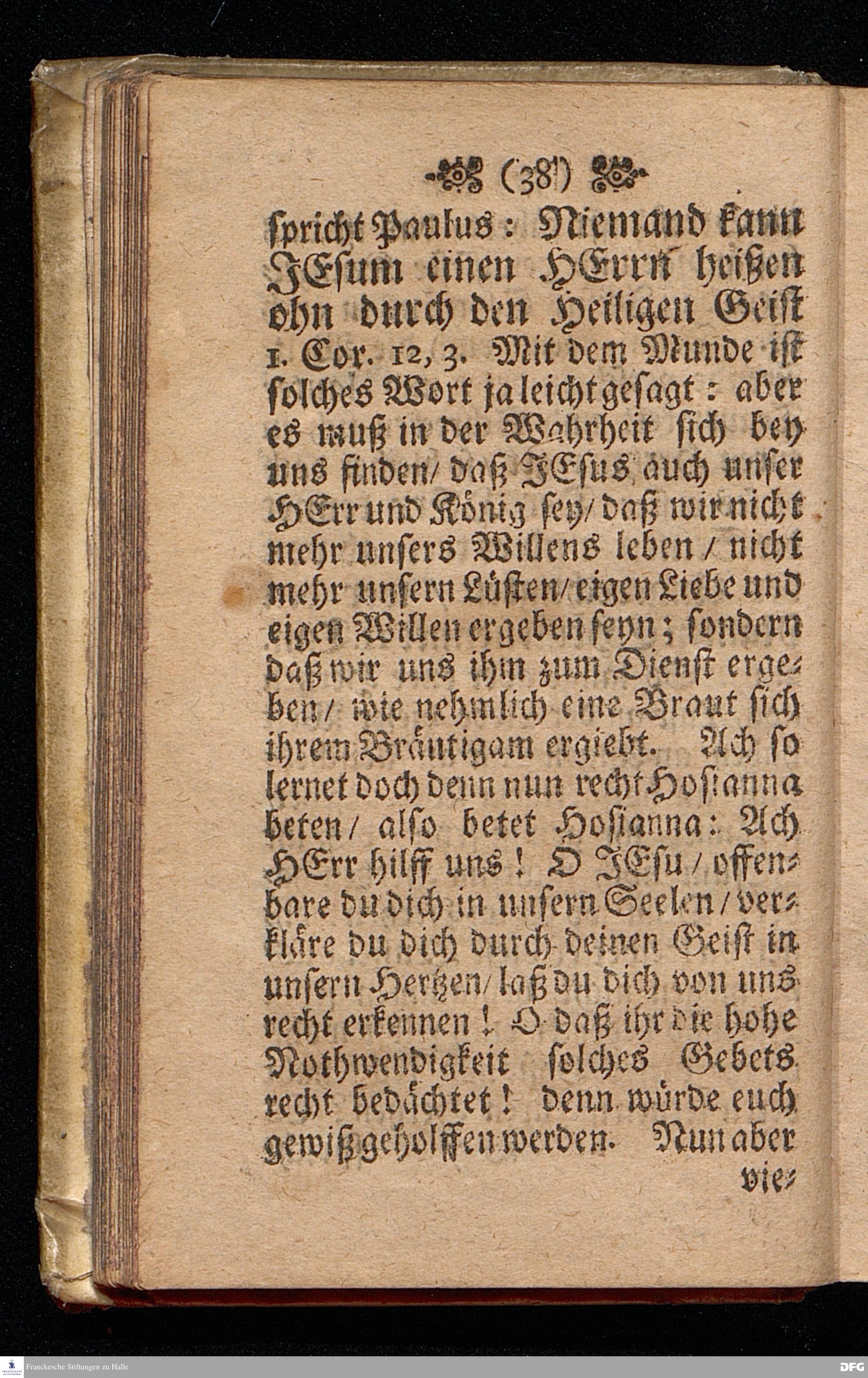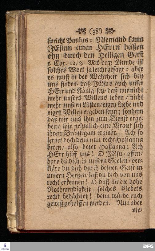 Das Hosianna / Als Ein Wort des Gebets / des Lobes und der Erweckung / Am ersten Soñtag des Advents Anno 1698, Uber das Evangelium Matth.XXI, 1==9, In der St.Georgen=Kirche zu Glaucha an Halle vorgestellet von M.August Hermann Francken / SS.Theol.Gr.& OO.LL.PP.Ord.& P.Glauch. HALLE / Gedruckt bey Christ.Henckel / 1699.