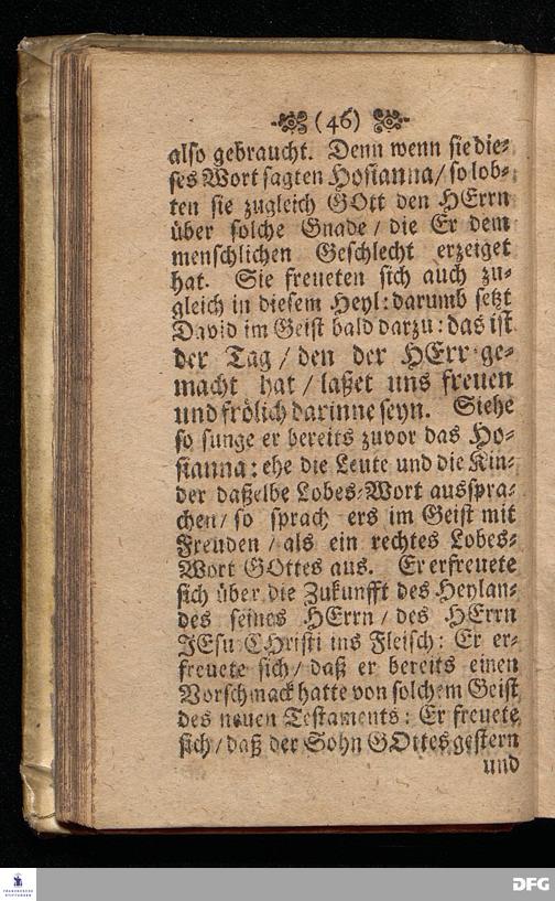 Das Hosianna / Als Ein Wort des Gebets / des Lobes und der Erweckung / Am ersten Soñtag des Advents Anno 1698, Uber das Evangelium Matth.XXI, 1==9, In der St.Georgen=Kirche zu Glaucha an Halle vorgestellet von M.August Hermann Francken / SS.Theol.Gr.& OO.LL.PP.Ord.& P.Glauch. HALLE / Gedruckt bey Christ.Henckel / 1699.