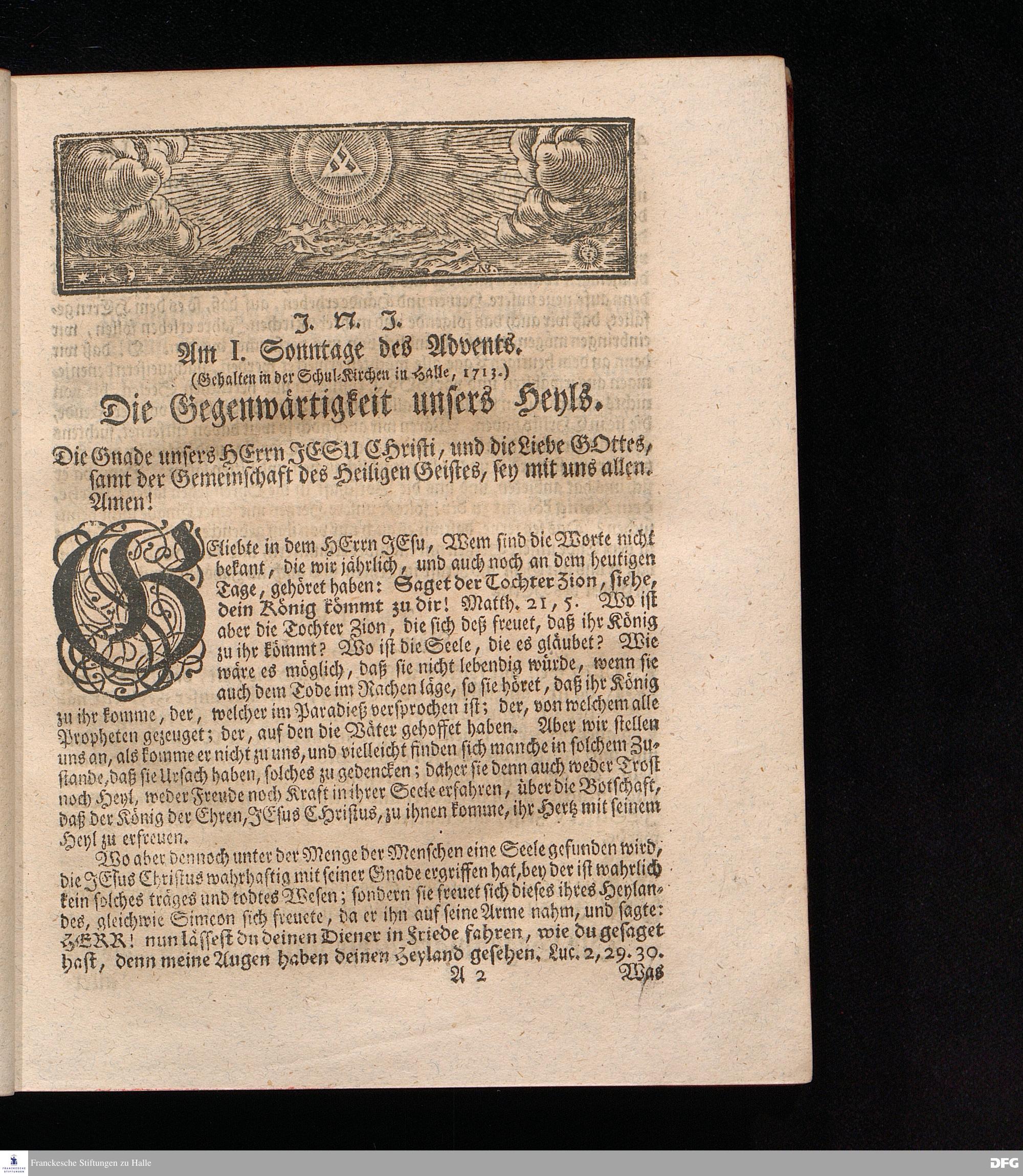August Hermann Franckens, S.Theol.Prof.Past.Ulric.& Scholarchæ Predigten über die Sonn= und Fest=Tags=Episteln / Nebst einer Vorrede vom erbaulichen predigen, und von dem rechten Gebrauch dieser Predigten, auch Mit nöthigen Registern versehen. Die dritte EDITION. HALLE, in Verlegung des Wäysen=Hauses, MDCCXXXXI.