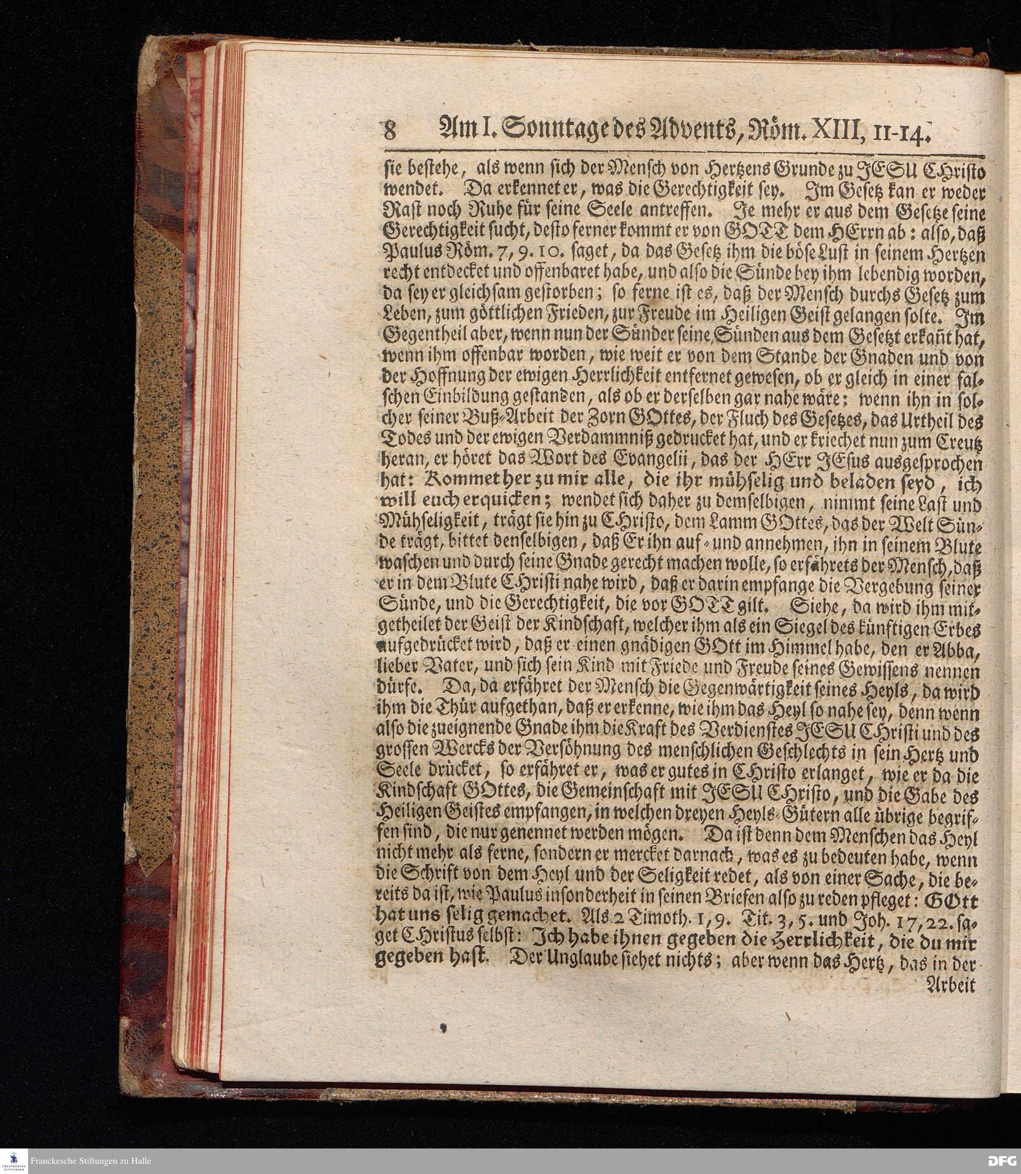 August Hermann Franckens, S.Theol.Prof.Past.Ulric.& Scholarchæ Predigten über die Sonn= und Fest=Tags=Episteln / Nebst einer Vorrede vom erbaulichen predigen, und von dem rechten Gebrauch dieser Predigten, auch Mit nöthigen Registern versehen. Die dritte EDITION. HALLE, in Verlegung des Wäysen=Hauses, MDCCXXXXI.