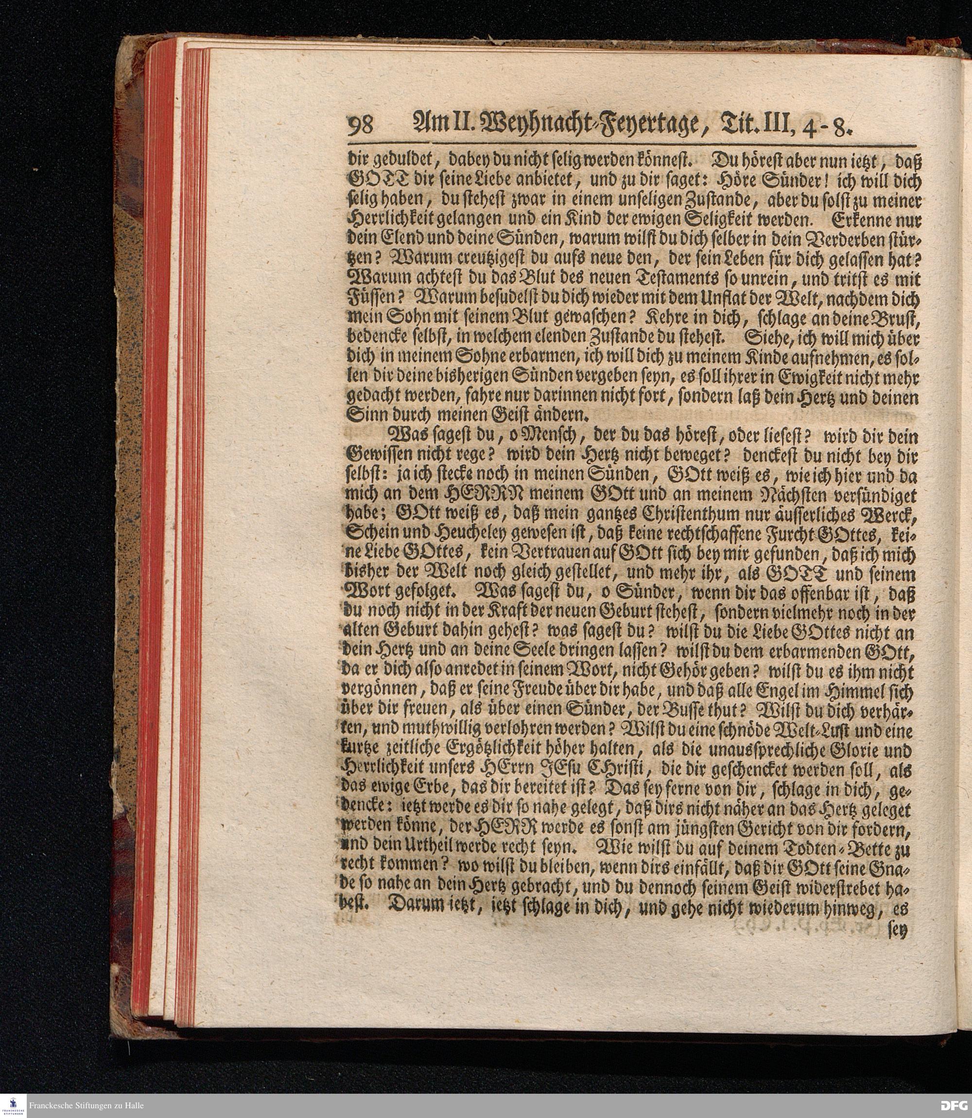 August Hermann Franckens, S.Theol.Prof.Past.Ulric.& Scholarchæ Predigten über die Sonn= und Fest=Tags=Episteln / Nebst einer Vorrede vom erbaulichen predigen, und von dem rechten Gebrauch dieser Predigten, auch Mit nöthigen Registern versehen. Die dritte EDITION. HALLE, in Verlegung des Wäysen=Hauses, MDCCXXXXI.