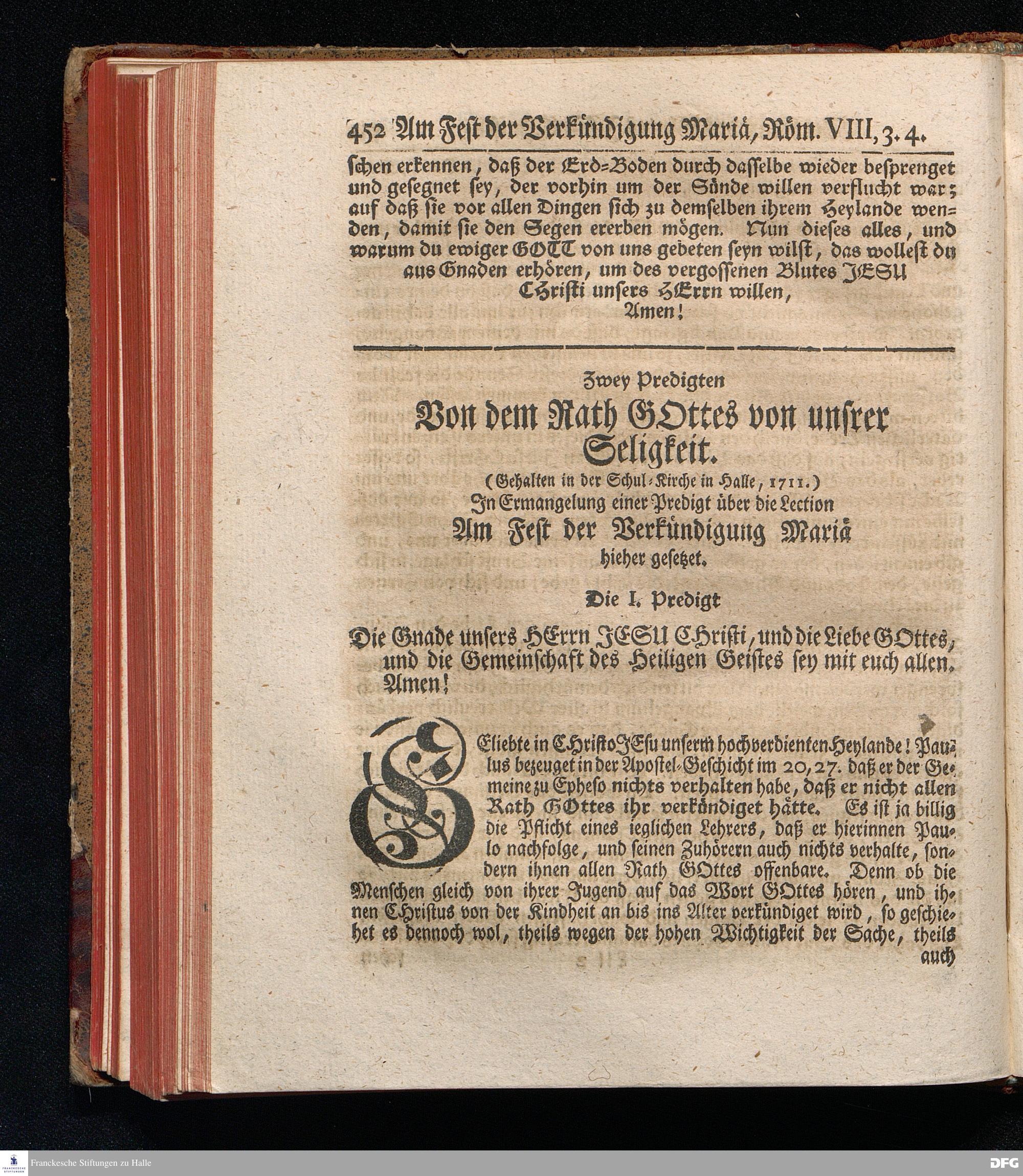 August Hermann Franckens, S.Theol.Prof.Past.Ulric.& Scholarchæ Predigten über die Sonn= und Fest=Tags=Episteln / Nebst einer Vorrede vom erbaulichen predigen, und von dem rechten Gebrauch dieser Predigten, auch Mit nöthigen Registern versehen. Die dritte EDITION. HALLE, in Verlegung des Wäysen=Hauses, MDCCXXXXI.