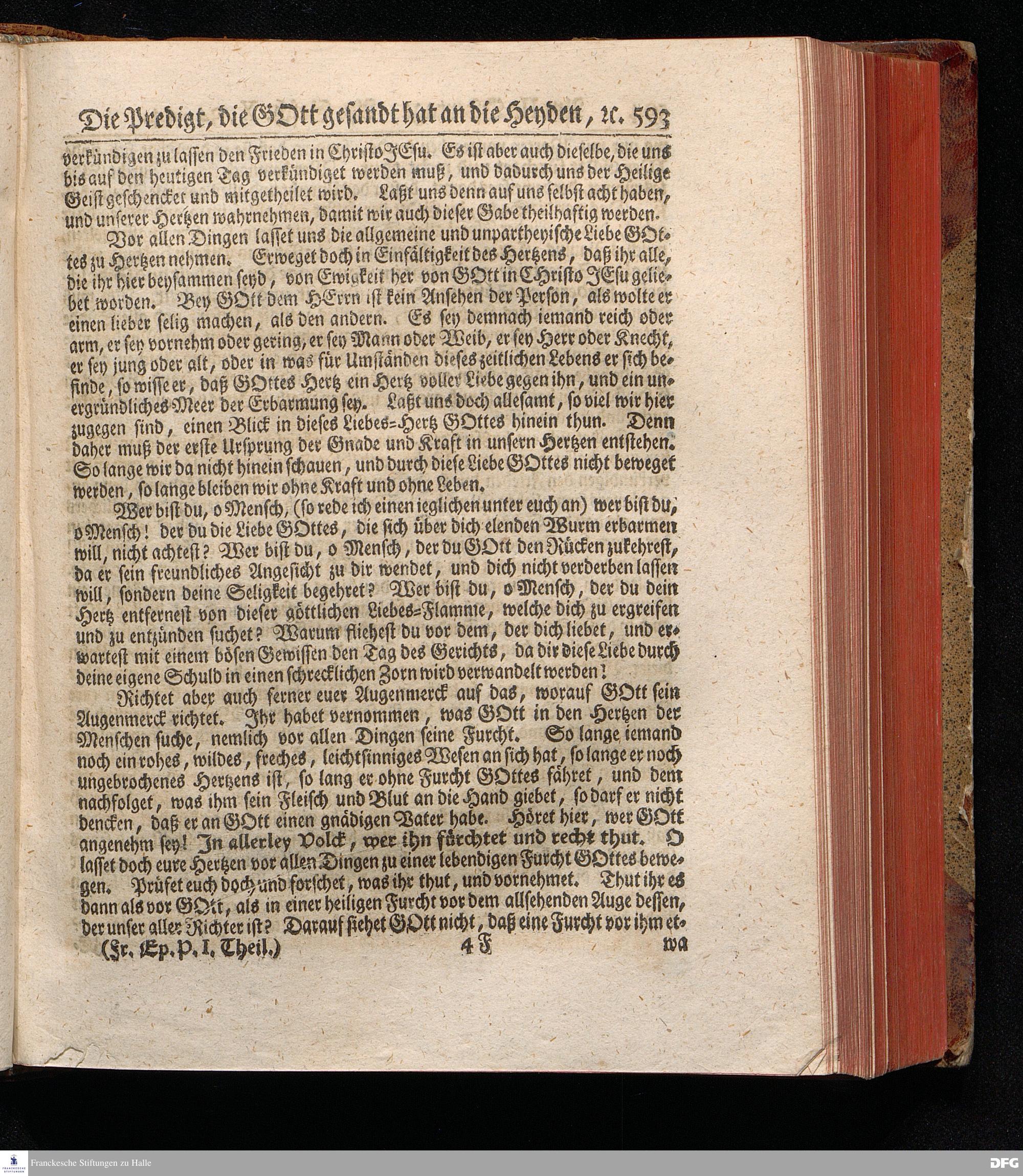 August Hermann Franckens, S.Theol.Prof.Past.Ulric.& Scholarchæ Predigten über die Sonn= und Fest=Tags=Episteln / Nebst einer Vorrede vom erbaulichen predigen, und von dem rechten Gebrauch dieser Predigten, auch Mit nöthigen Registern versehen. Die dritte EDITION. HALLE, in Verlegung des Wäysen=Hauses, MDCCXXXXI.