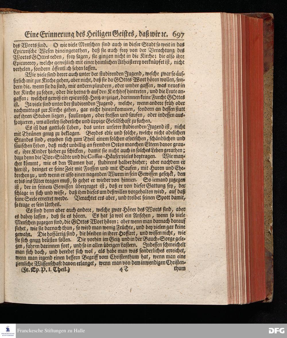 August Hermann Franckens, S.Theol.Prof.Past.Ulric.& Scholarchæ Predigten über die Sonn= und Fest=Tags=Episteln / Nebst einer Vorrede vom erbaulichen predigen, und von dem rechten Gebrauch dieser Predigten, auch Mit nöthigen Registern versehen. Die dritte EDITION. HALLE, in Verlegung des Wäysen=Hauses, MDCCXXXXI.
