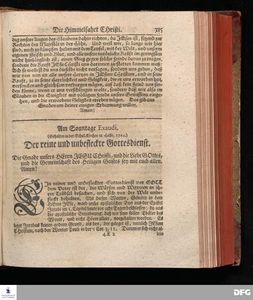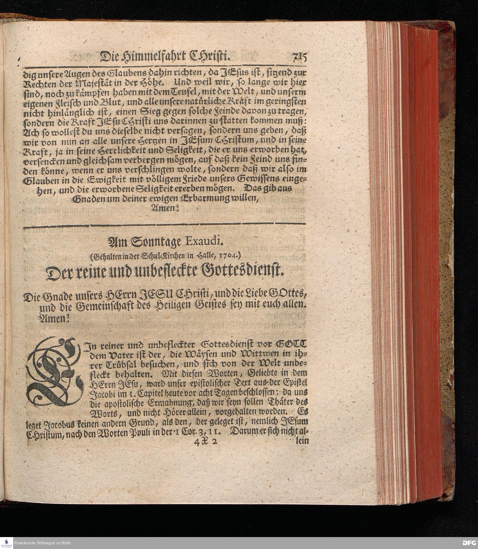 August Hermann Franckens, S.Theol.Prof.Past.Ulric.& Scholarchæ Predigten über die Sonn= und Fest=Tags=Episteln / Nebst einer Vorrede vom erbaulichen predigen, und von dem rechten Gebrauch dieser Predigten, auch Mit nöthigen Registern versehen. Die dritte EDITION. HALLE, in Verlegung des Wäysen=Hauses, MDCCXXXXI.