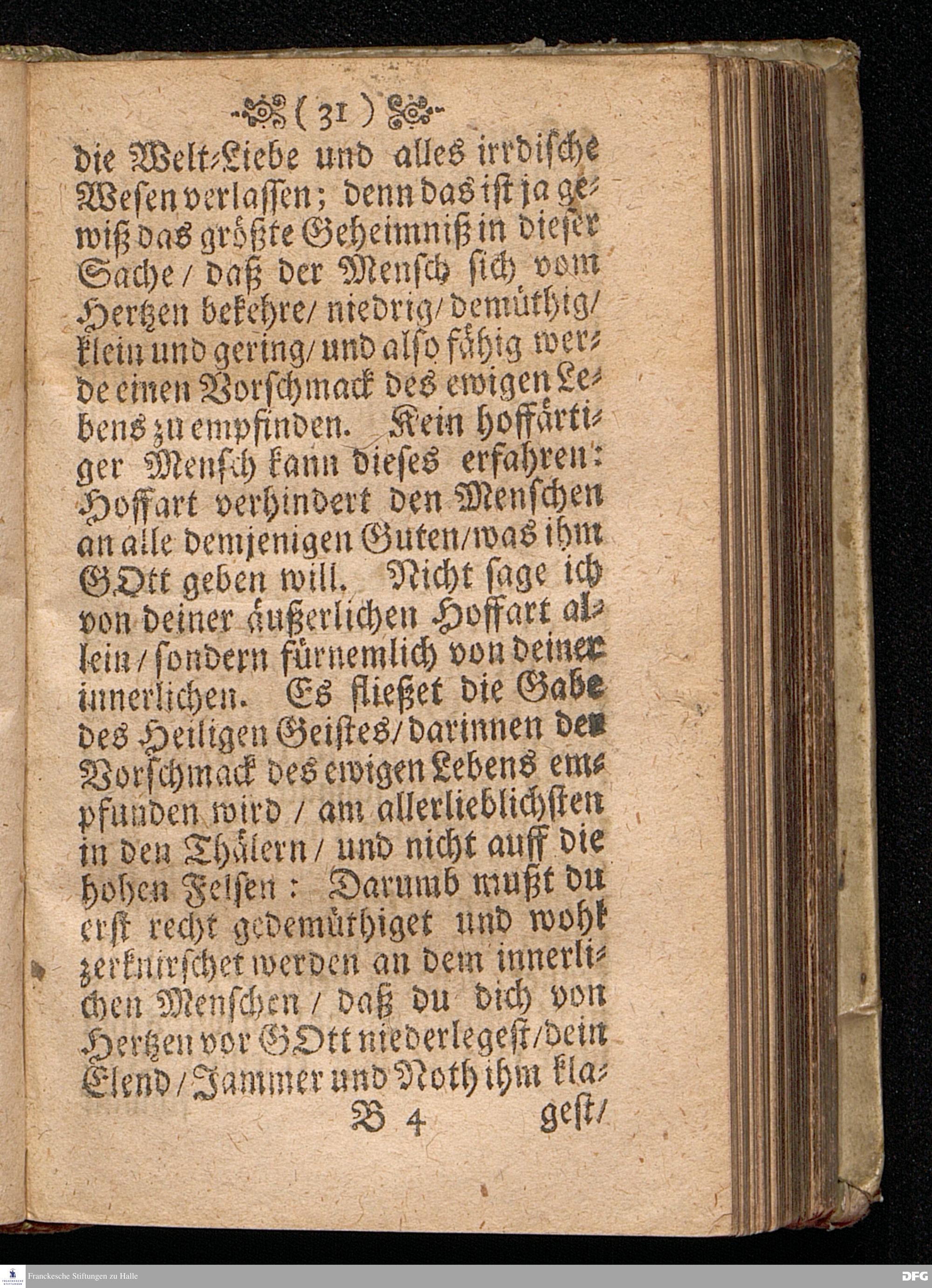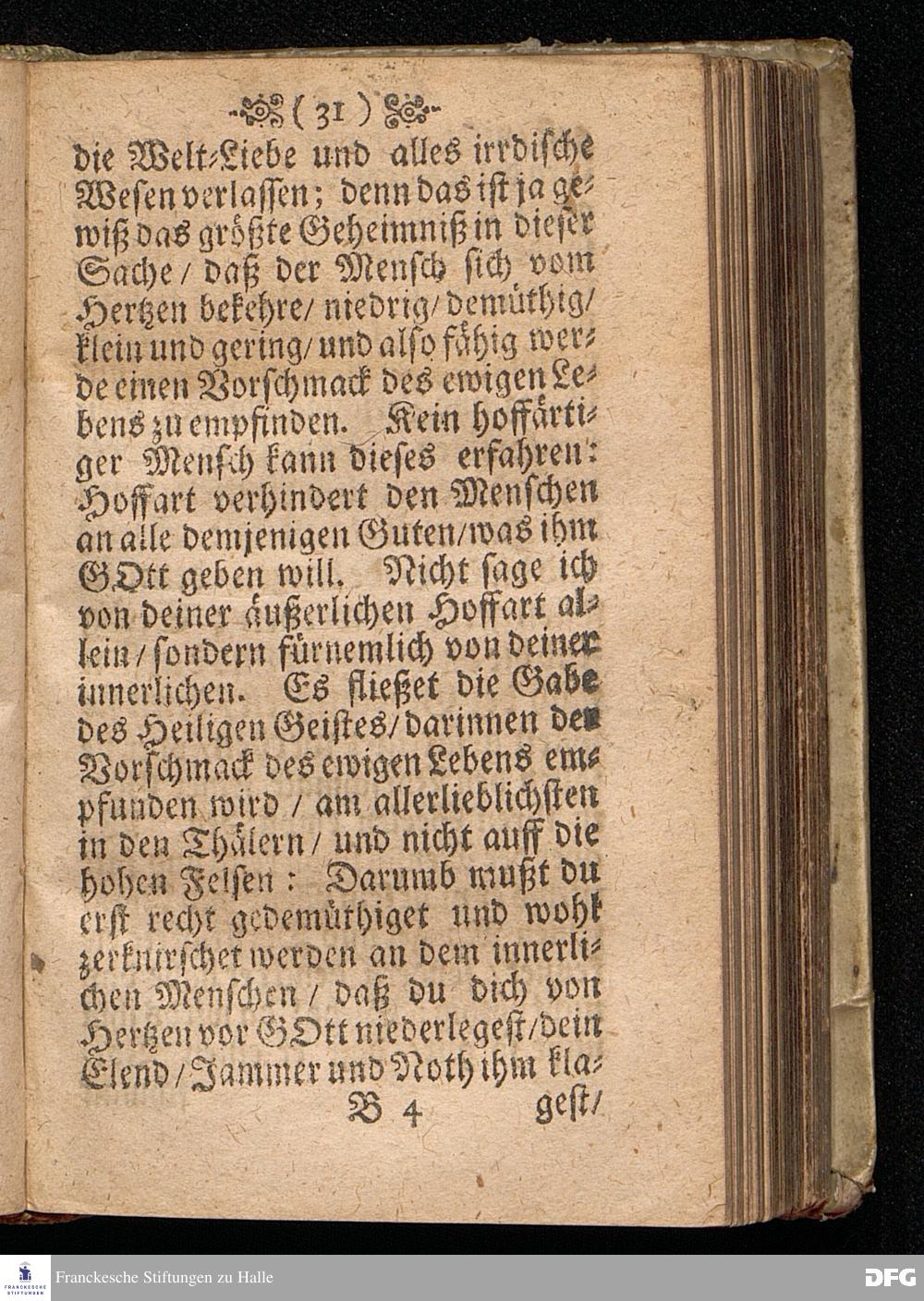 Der Vorschmack des ewigen Lebens / In einer Predigt Uber das Evangelium Matth.XVII, v.1==9, am 6.Sonntag nach Epiphan. Anno 1698, In der St.Georgen=Kirche zu Glaucha an Halle vorgestellet von M.August Hermann Francken / Gr.& OO.LL.P.P.& P.Glauch. HALLE / Gedruckt bey Christian Henckel / Univers.Buchdr.1698.