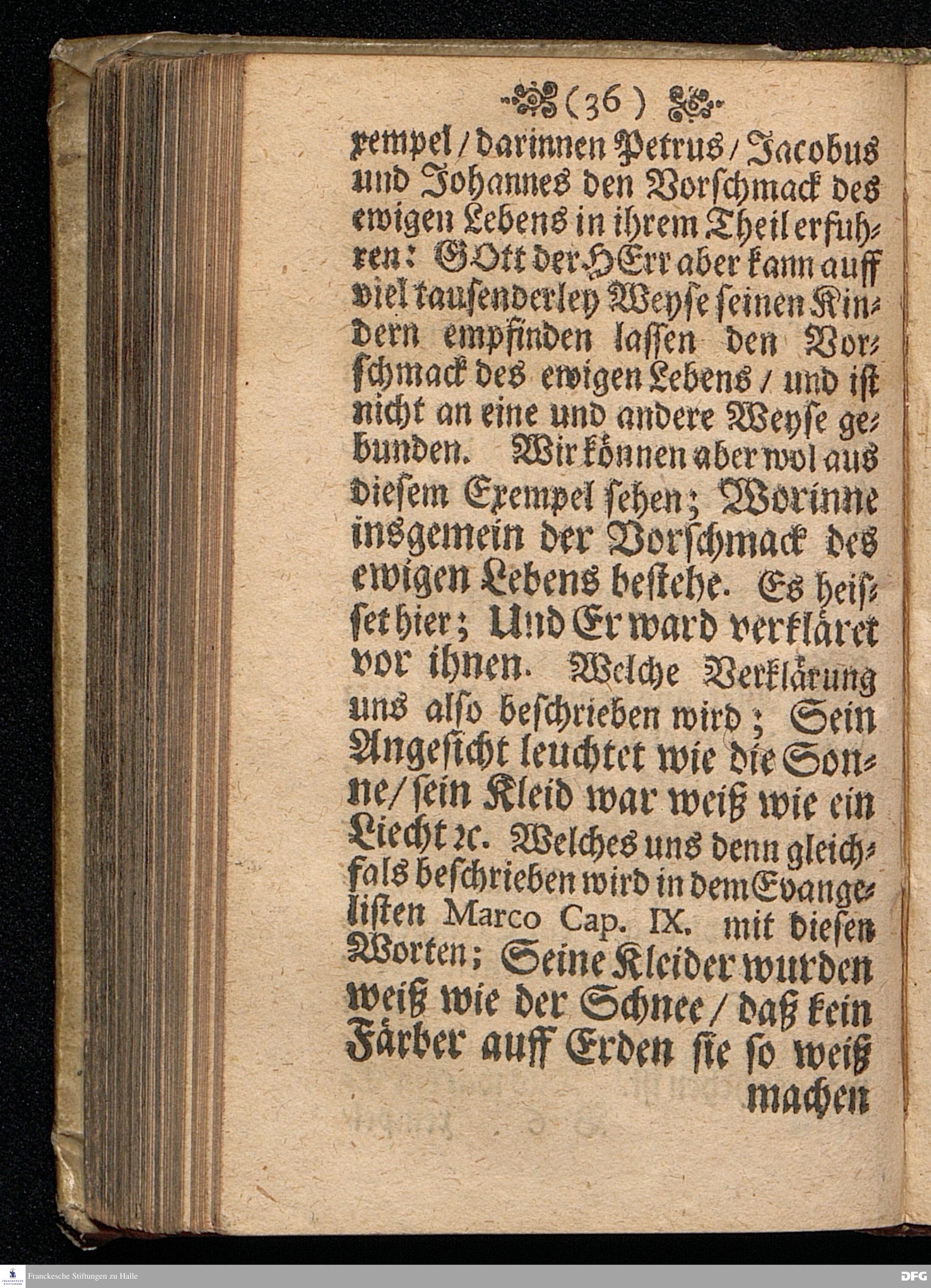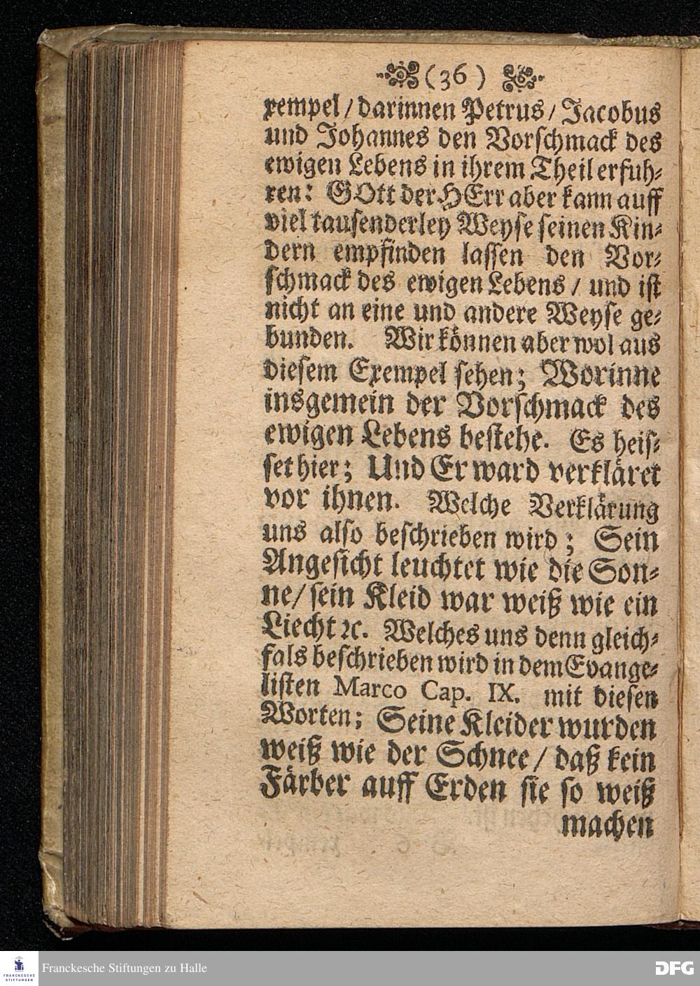 Der Vorschmack des ewigen Lebens / In einer Predigt Uber das Evangelium Matth.XVII, v.1==9, am 6.Sonntag nach Epiphan. Anno 1698, In der St.Georgen=Kirche zu Glaucha an Halle vorgestellet von M.August Hermann Francken / Gr.& OO.LL.P.P.& P.Glauch. HALLE / Gedruckt bey Christian Henckel / Univers.Buchdr.1698.