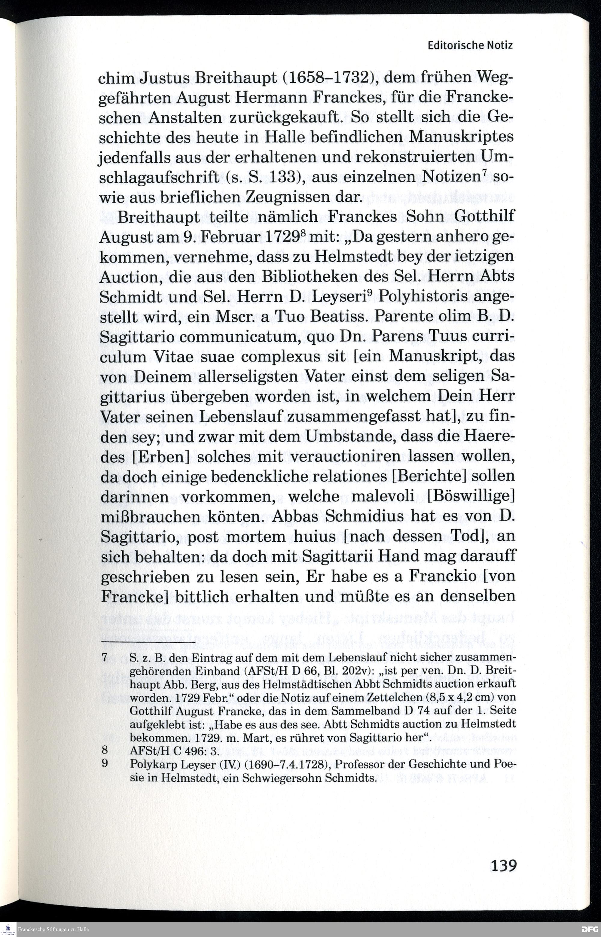 Lebensläufe August Hermann Franckes : Autobiographie und Biographie / herausgegeben, kommentiert und mit einem Nachwort versehen von Markus Matthias
