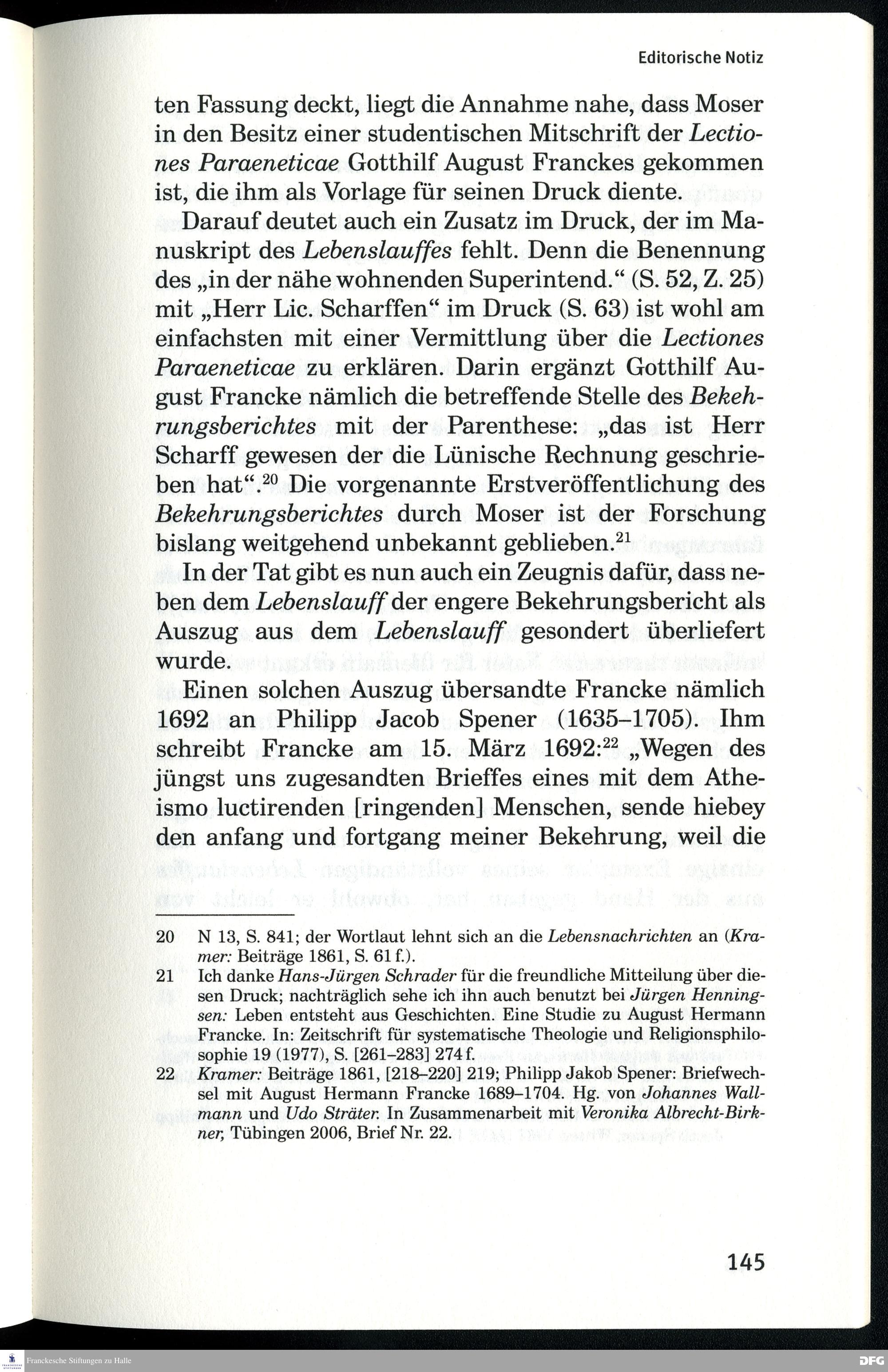 Lebensläufe August Hermann Franckes : Autobiographie und Biographie / herausgegeben, kommentiert und mit einem Nachwort versehen von Markus Matthias