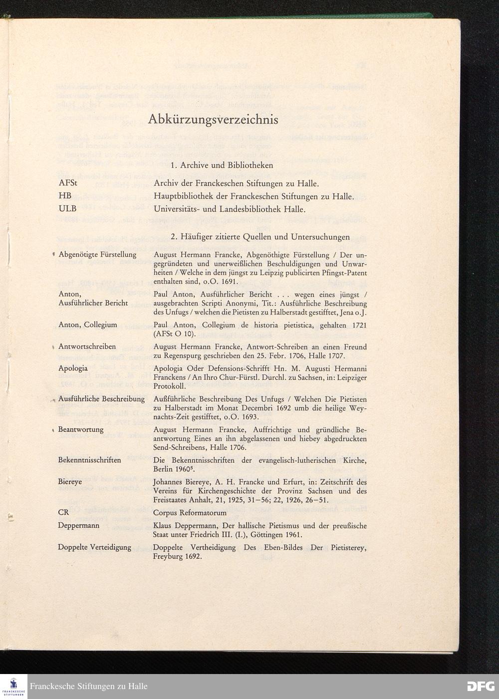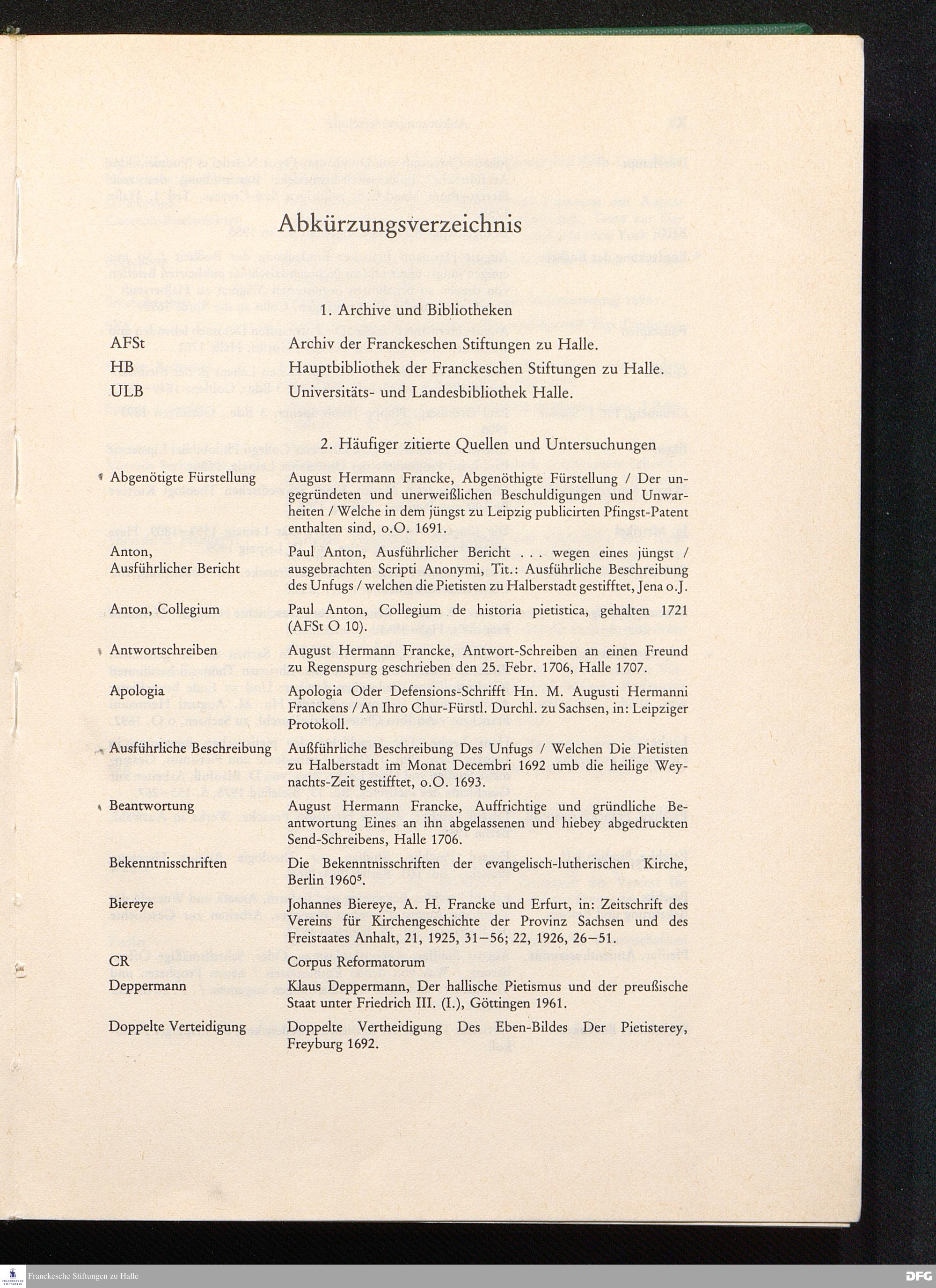Verzeichnis der in den Texten zitierten Schriften Franckes