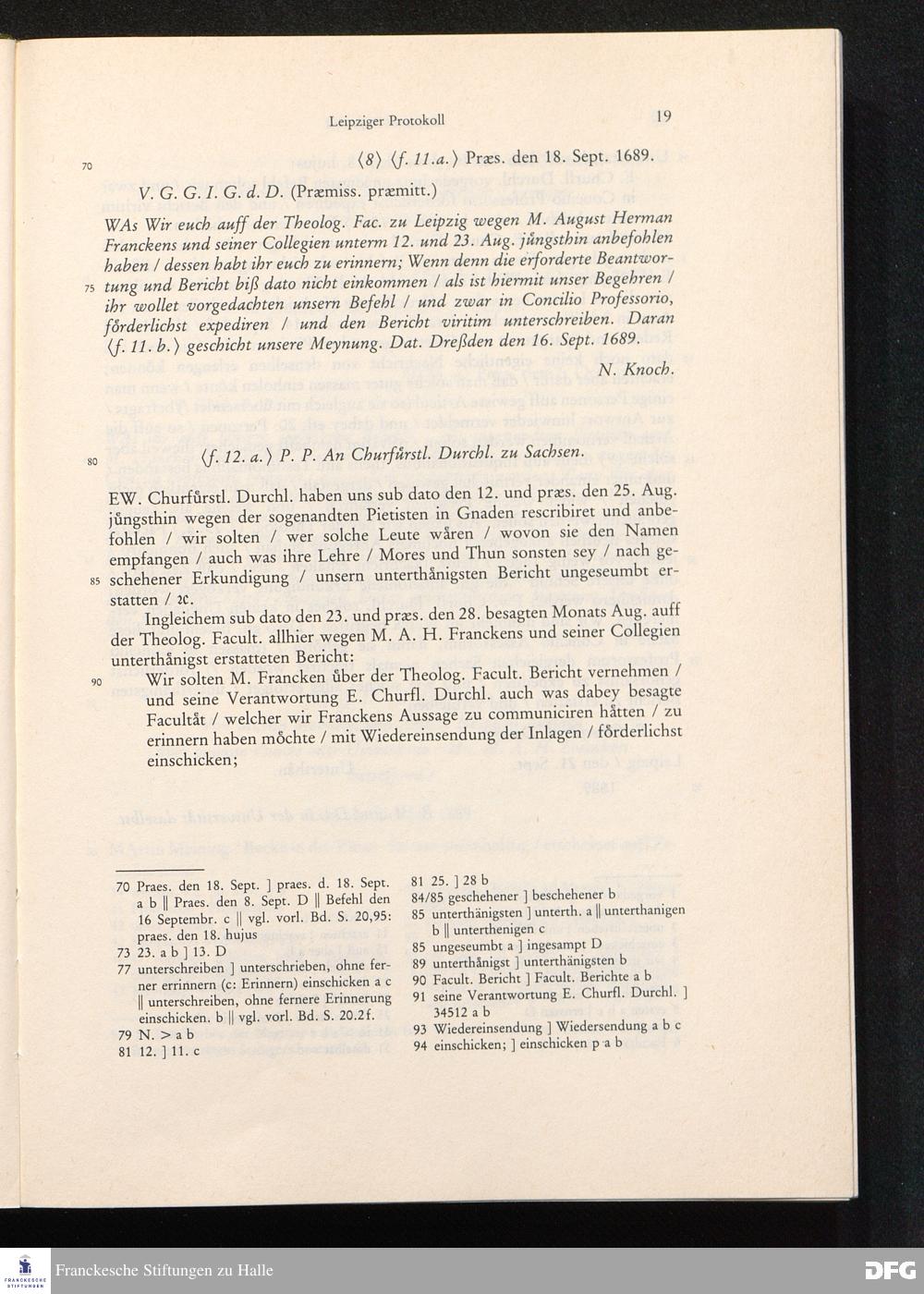 August Hermann Franckens, S. Theol. Prof. zu Halle und Past. zu Glaucha vor Halle, Gründliche und Gewissenhafte Verantwortung gegen Hn. D. Johann Friedrich Mayers, Professoris Theologi auff der Universität zu Greiffswald, harte und unwahrhaffte Beschuldigungen ...