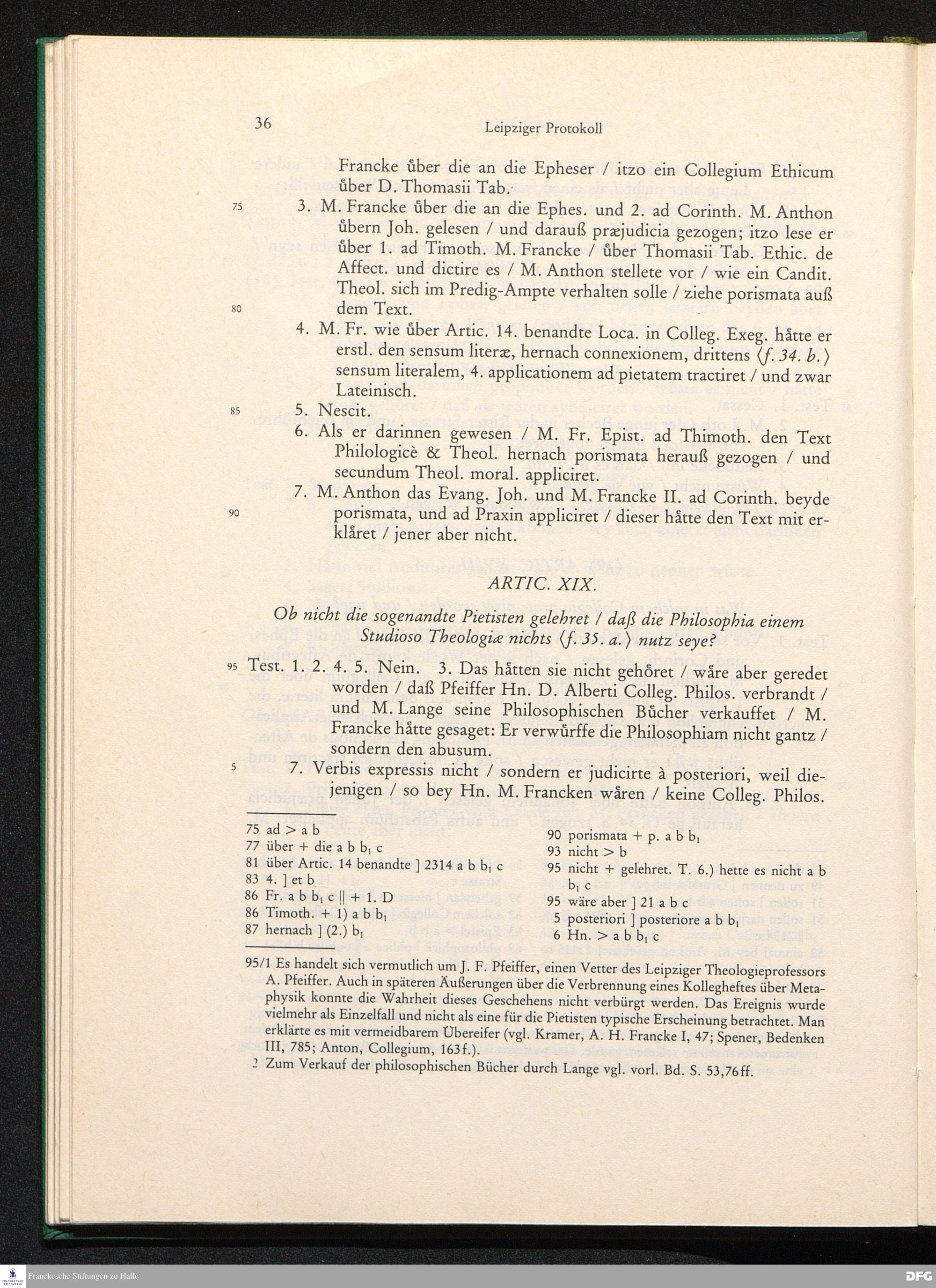 Gerichtliches Leipziger Protocoll In Sachen die so genannten Pietisten betreffend/ Samt Hn. Christian Thomasii. berümten JC. Rechtlichem Bedencken darüber; Und zu Ende beygefügter Apologia Oder Defensions-Schrifft Hn. M. Augusti Hermanni Franckens ...