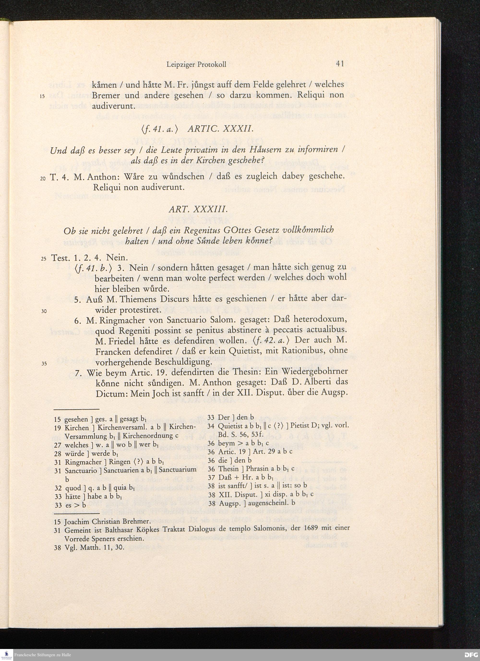 August Hermann Franckens, S. Theol. Prof. zu Halle und Past. zu Glaucha bey Halle, Antwort-Schreiben an einen Freund zu Regenspurg geschrieben den 25. Febr. 1706.