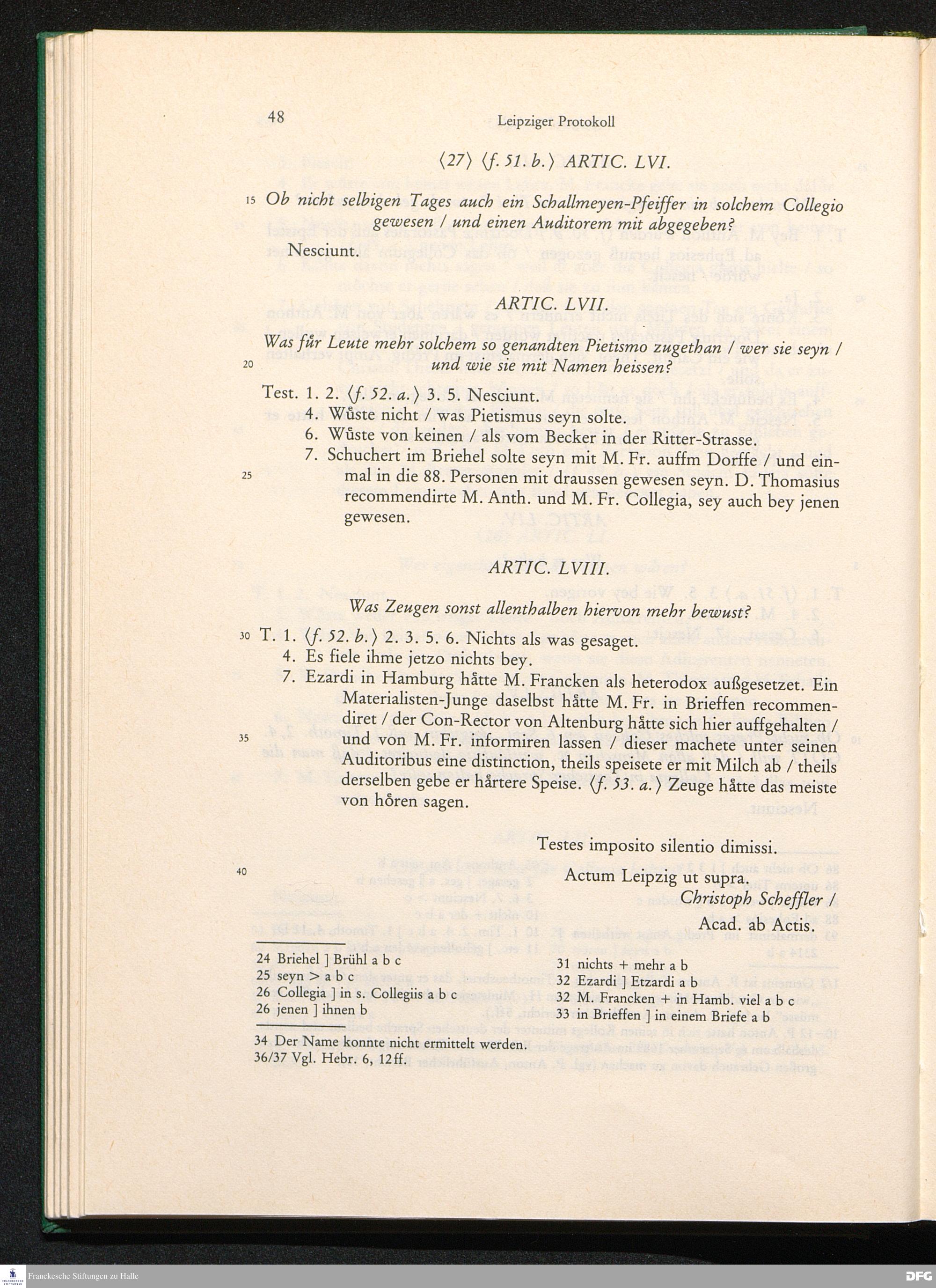 Gerichtliches Leipziger Protocoll In Sachen die so genannten Pietisten betreffend/ Samt Hn. Christian Thomasii. berümten JC. Rechtlichem Bedencken darüber; Und zu Ende beygefügter Apologia Oder Defensions-Schrifft Hn. M. Augusti Hermanni Franckens ...