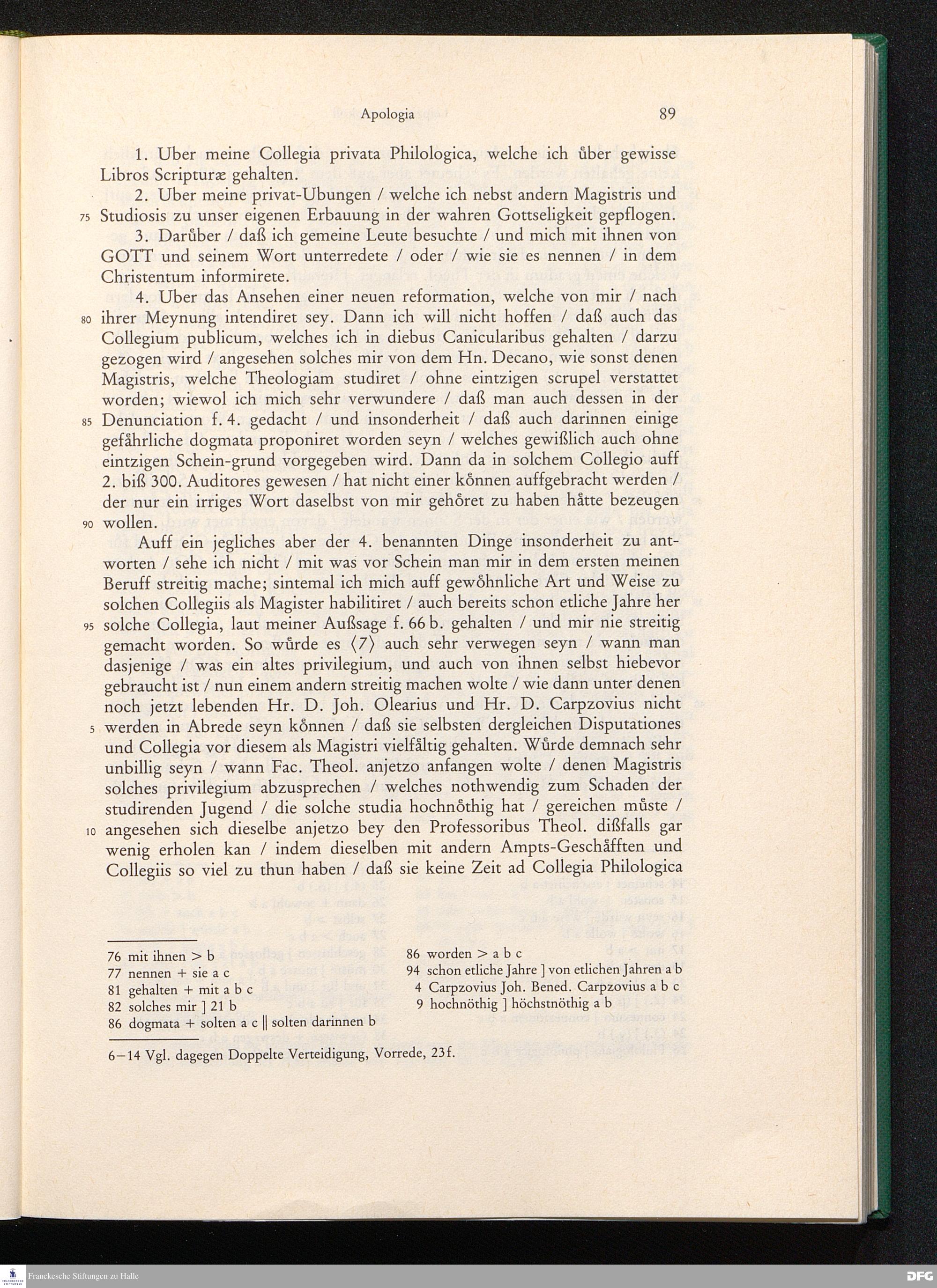 Gerichtliches Leipziger Protocoll In Sachen die so genannten Pietisten betreffend/ Samt Hn. Christian Thomasii. berümten JC. Rechtlichem Bedencken darüber; Und zu Ende beygefügter Apologia Oder Defensions-Schrifft Hn. M. Augusti Hermanni Franckens ...