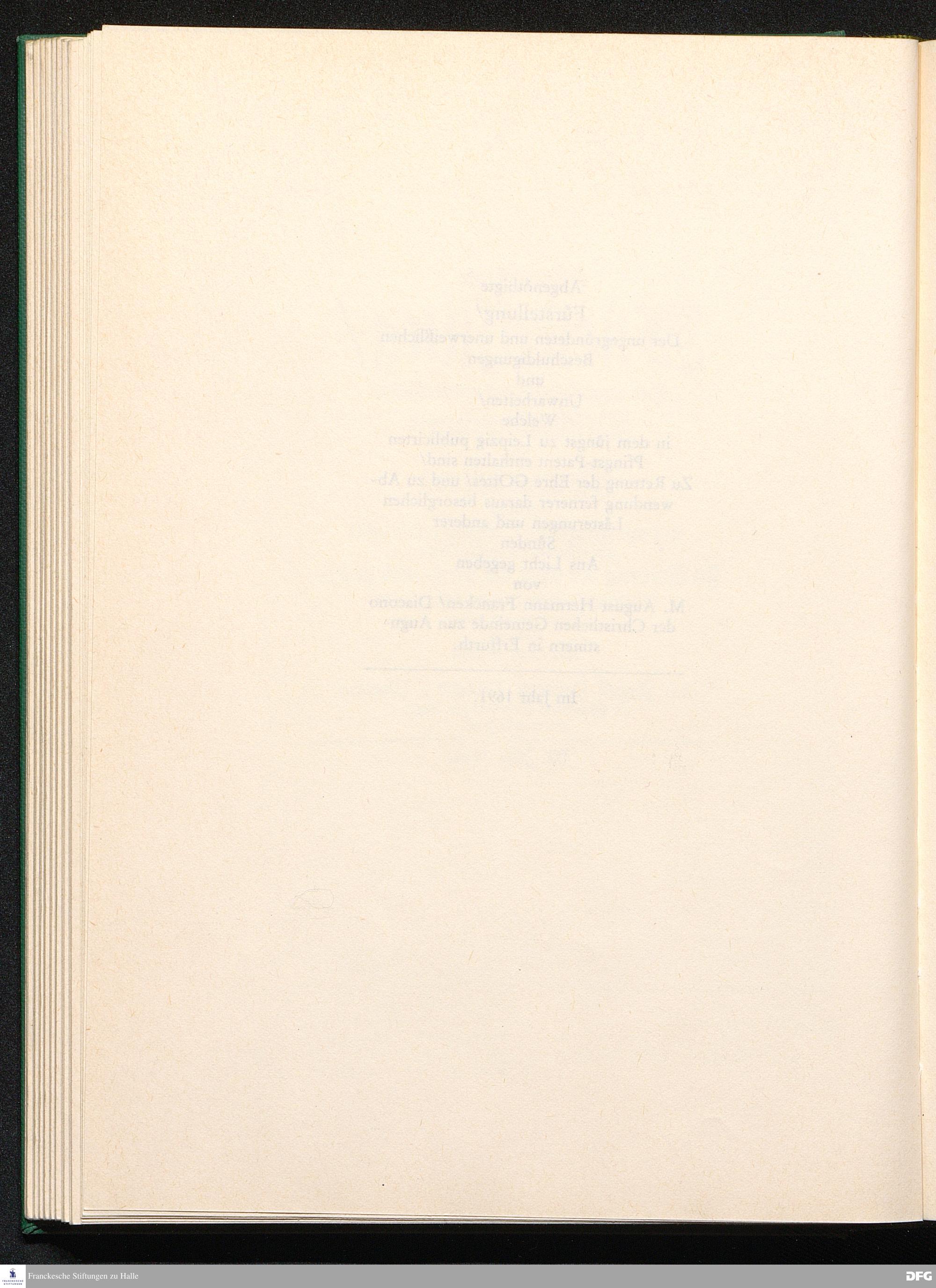 August Hermann Franckens, S. Theol. Prof. zu Halle und Past. zu Glaucha vor Halle, Gründliche und Gewissenhafte Verantwortung gegen Hn. D. Johann Friedrich Mayers, Professoris Theologi auff der Universität zu Greiffswald, harte und unwahrhaffte Beschuldigungen ...