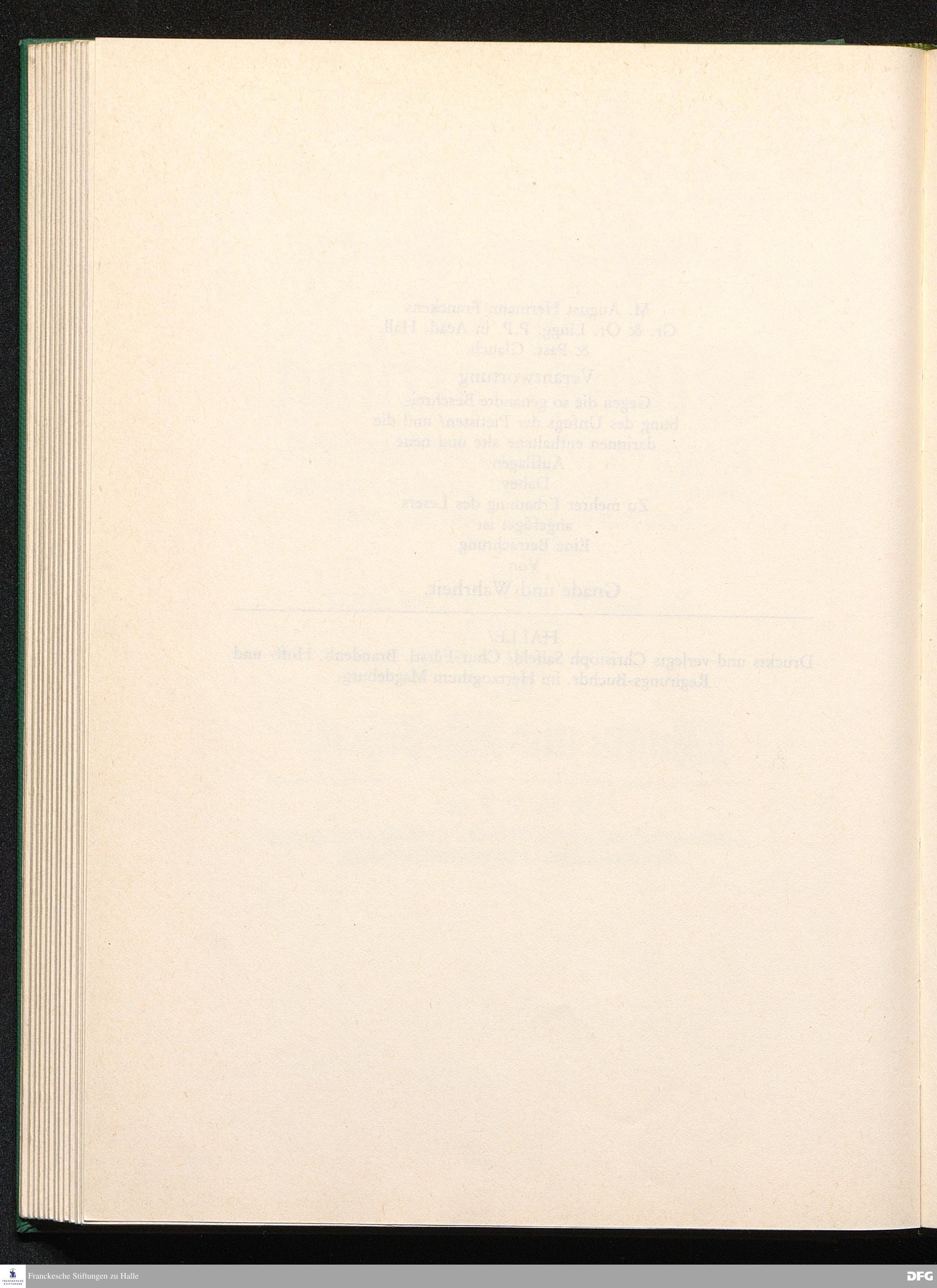 August Hermann Franckens, S. Theol. Prof. zu Halle und Past. zu Glaucha vor Halle, Gründliche und Gewissenhafte Verantwortung gegen Hn. D. Johann Friedrich Mayers, Professoris Theologi auff der Universität zu Greiffswald, harte und unwahrhaffte Beschuldigungen ...