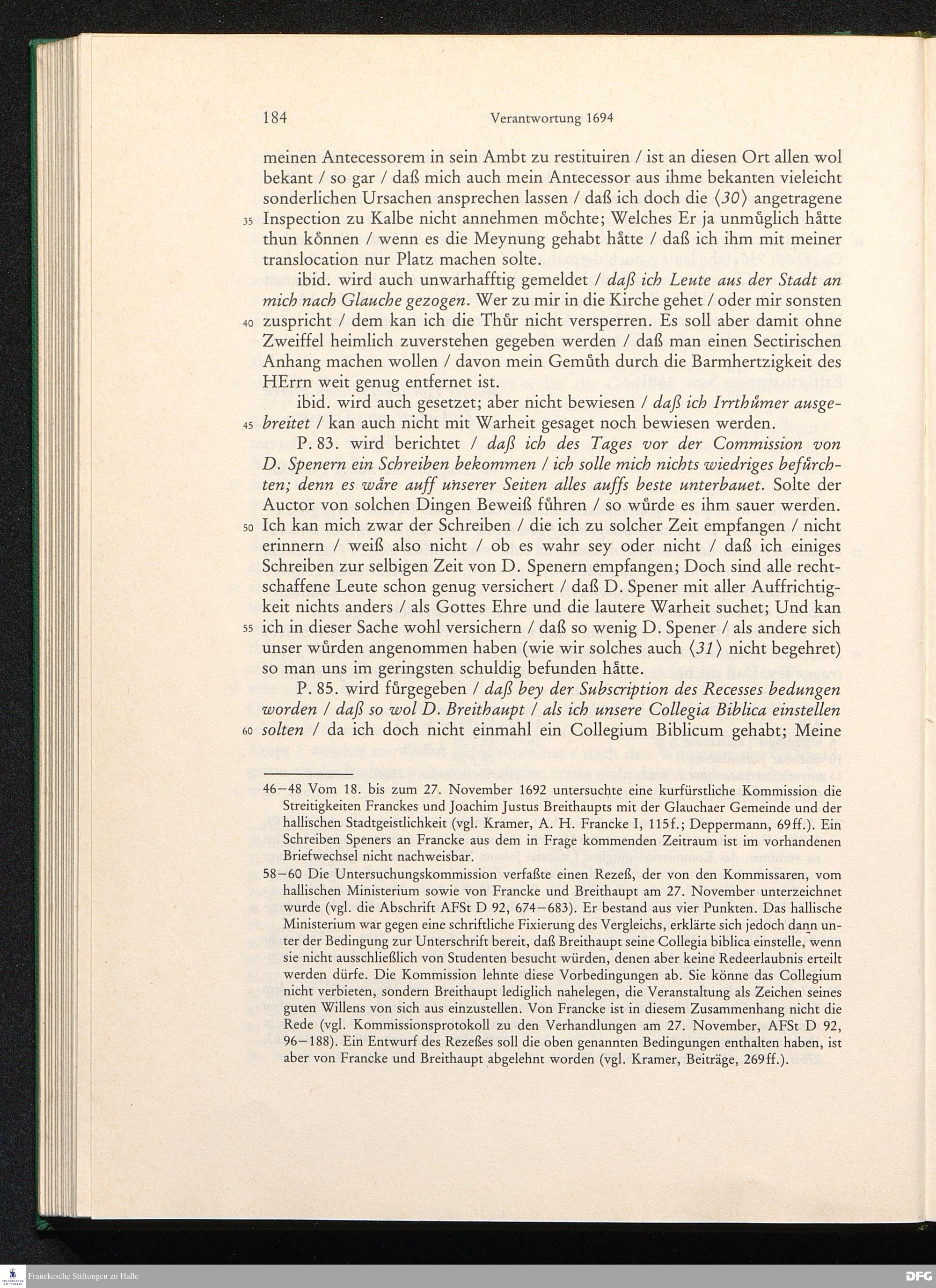 August Hermann Franckens, S. Theol. Prof. zu Halle und Past. zu Glaucha vor Halle, Gründliche und Gewissenhafte Verantwortung gegen Hn. D. Johann Friedrich Mayers, Professoris Theologi auff der Universität zu Greiffswald, harte und unwahrhaffte Beschuldigungen ...