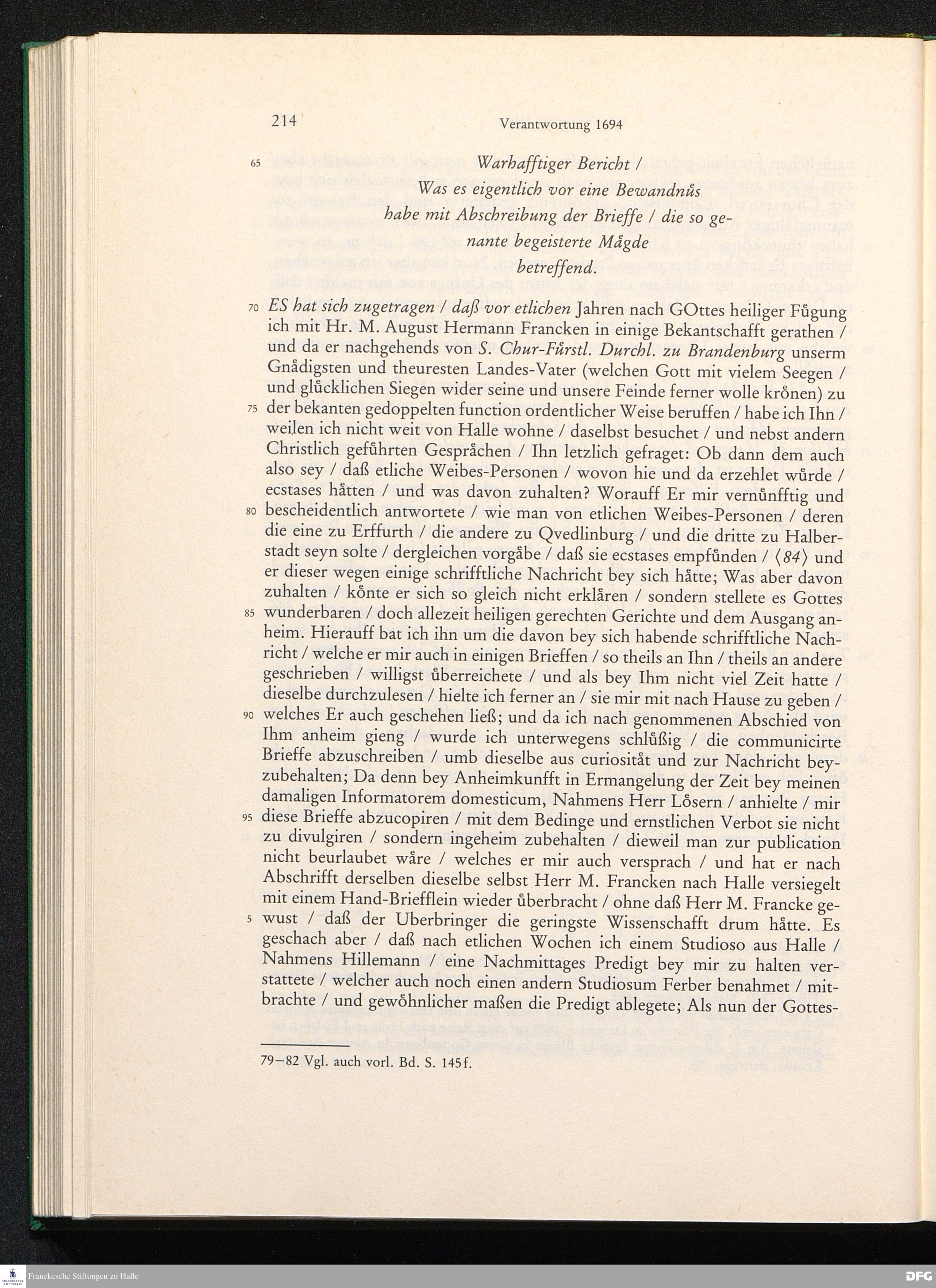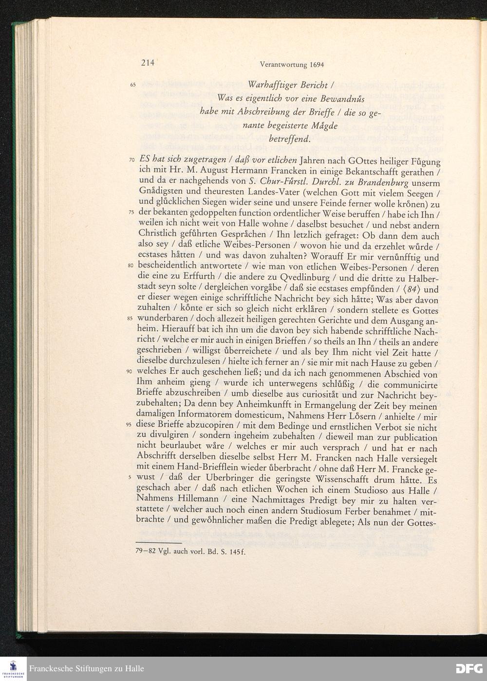 August Hermann Franckens, S. Th. Prof. zu Halle und Past. zu Glaucha vor Halle, Aufrichtige und gründliche Beantwortung Eines an ihn abgelassenen und hiebey abgedruckten Send-Schreibens Eines Christl. Theologi, Der Professorum Theologiae zu Halle ...