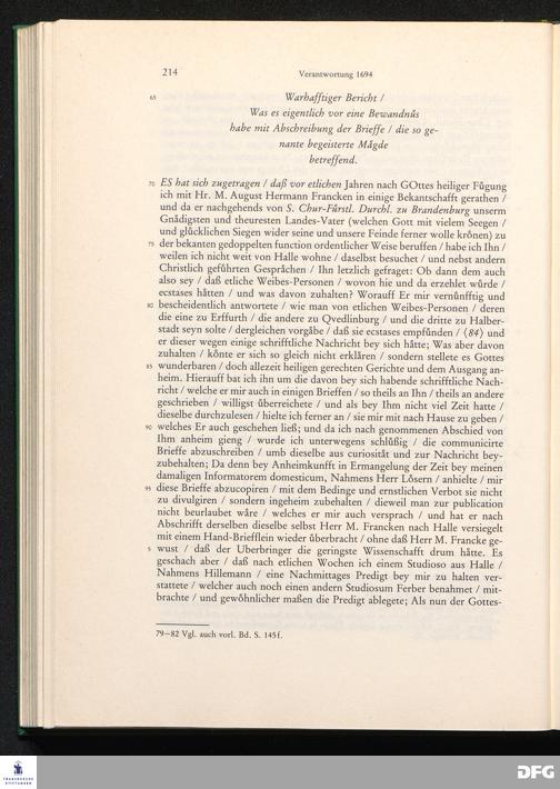 M. August Hermann Franckens, Gr. & Or. Lingg. in Acad. Hall. P. P. & Past. Glauch. Entdeckung der Boßheit, So mit einigen jüngst unter seinem Nahmen fälschlich publicirten Brieffen von dreyen so benahmten begeisterten Mägden zu Halberstadt/ Quedlinburg und Erffurt begangen.