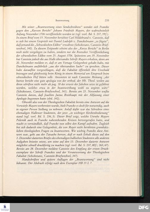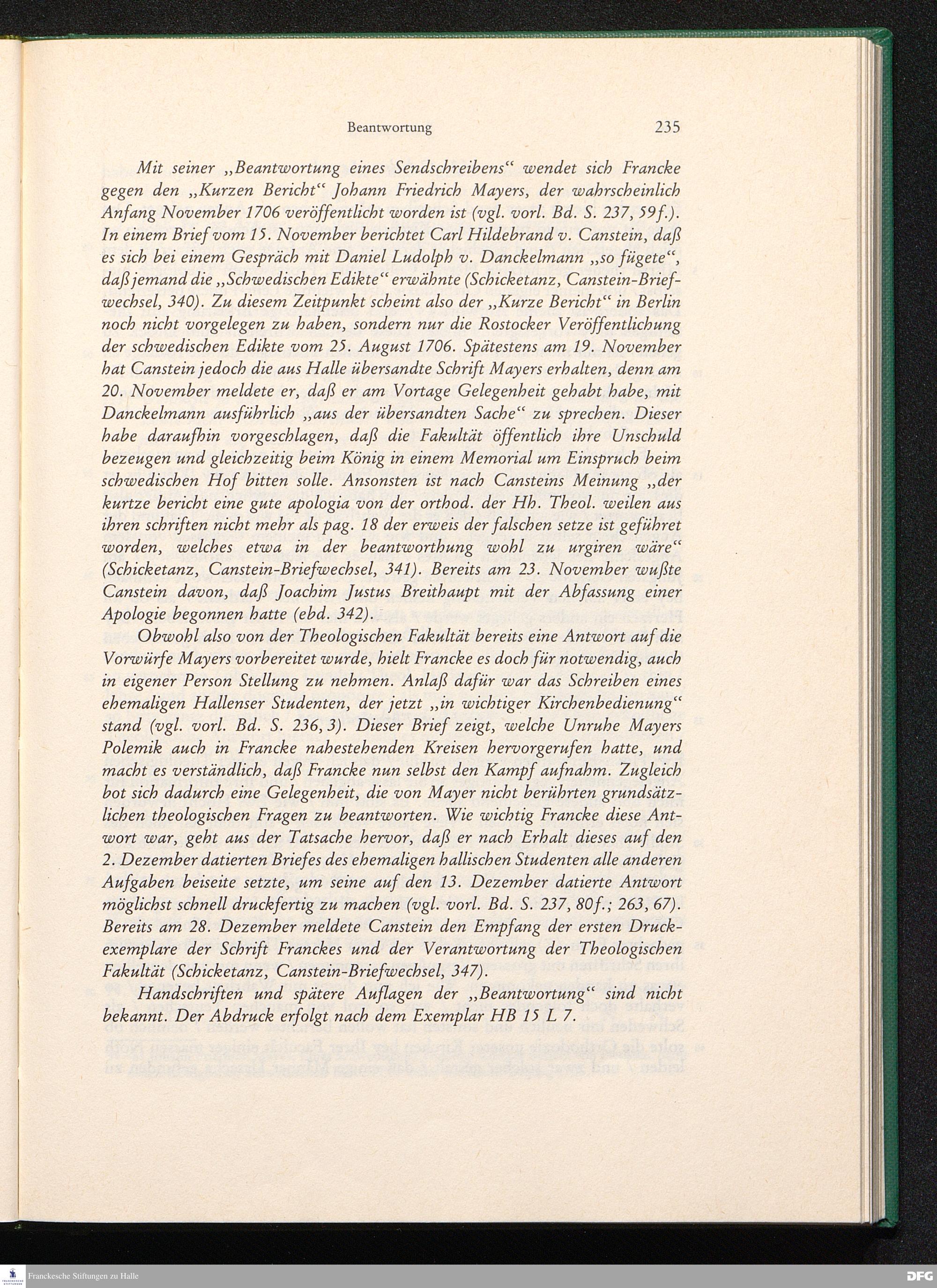 August Hermann Franckens, S. Th. Prof. zu Halle und Past. zu Glaucha vor Halle, Aufrichtige und gründliche Beantwortung Eines an ihn abgelassenen und hiebey abgedruckten Send-Schreibens Eines Christl. Theologi, Der Professorum Theologiae zu Halle ...