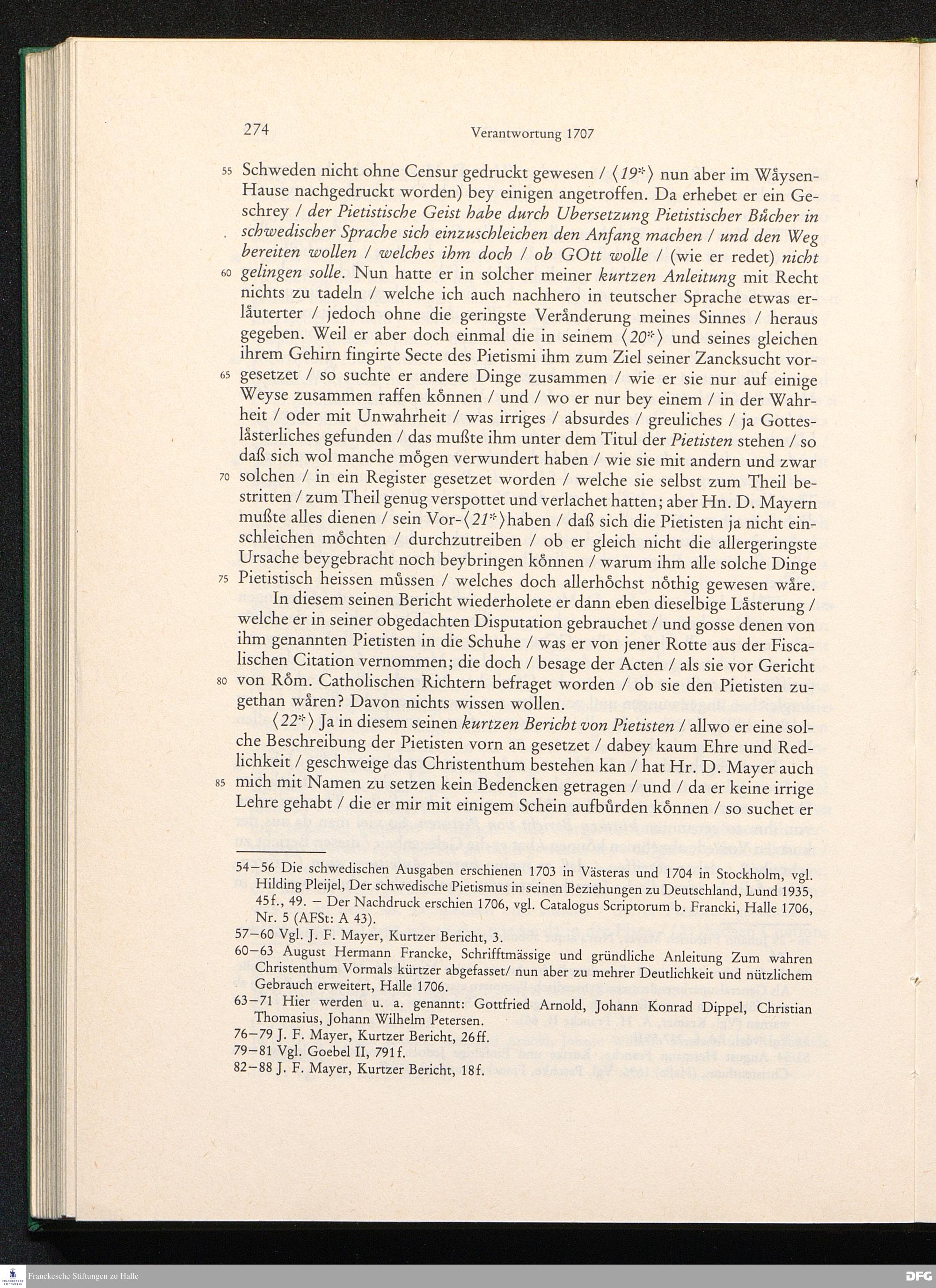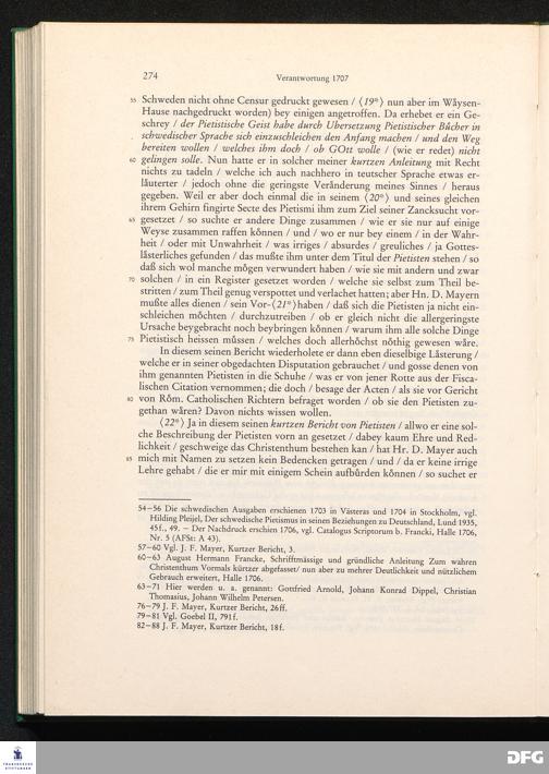 August Hermann Franckens, S. Theol. Prof. zu Halle und Past. zu Glaucha vor Halle, Gründliche und Gewissenhafte Verantwortung gegen Hn. D. Johann Friedrich Mayers, Professoris Theologi auff der Universität zu Greiffswald, harte und unwahrhaffte Beschuldigungen ...