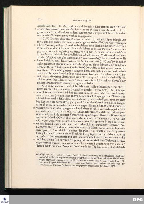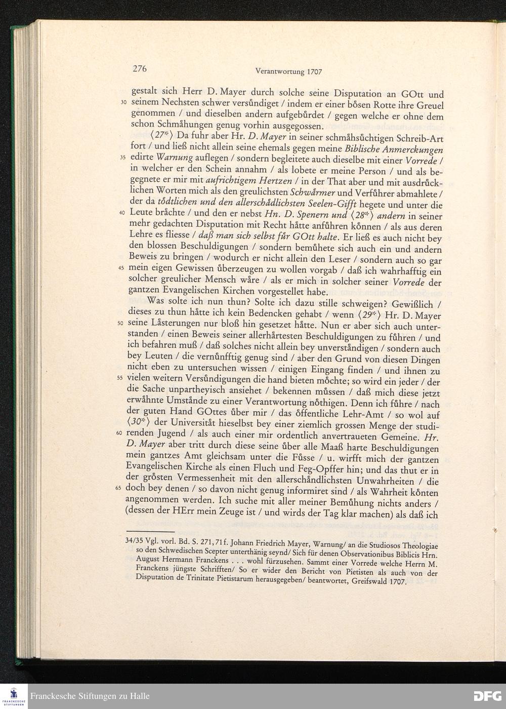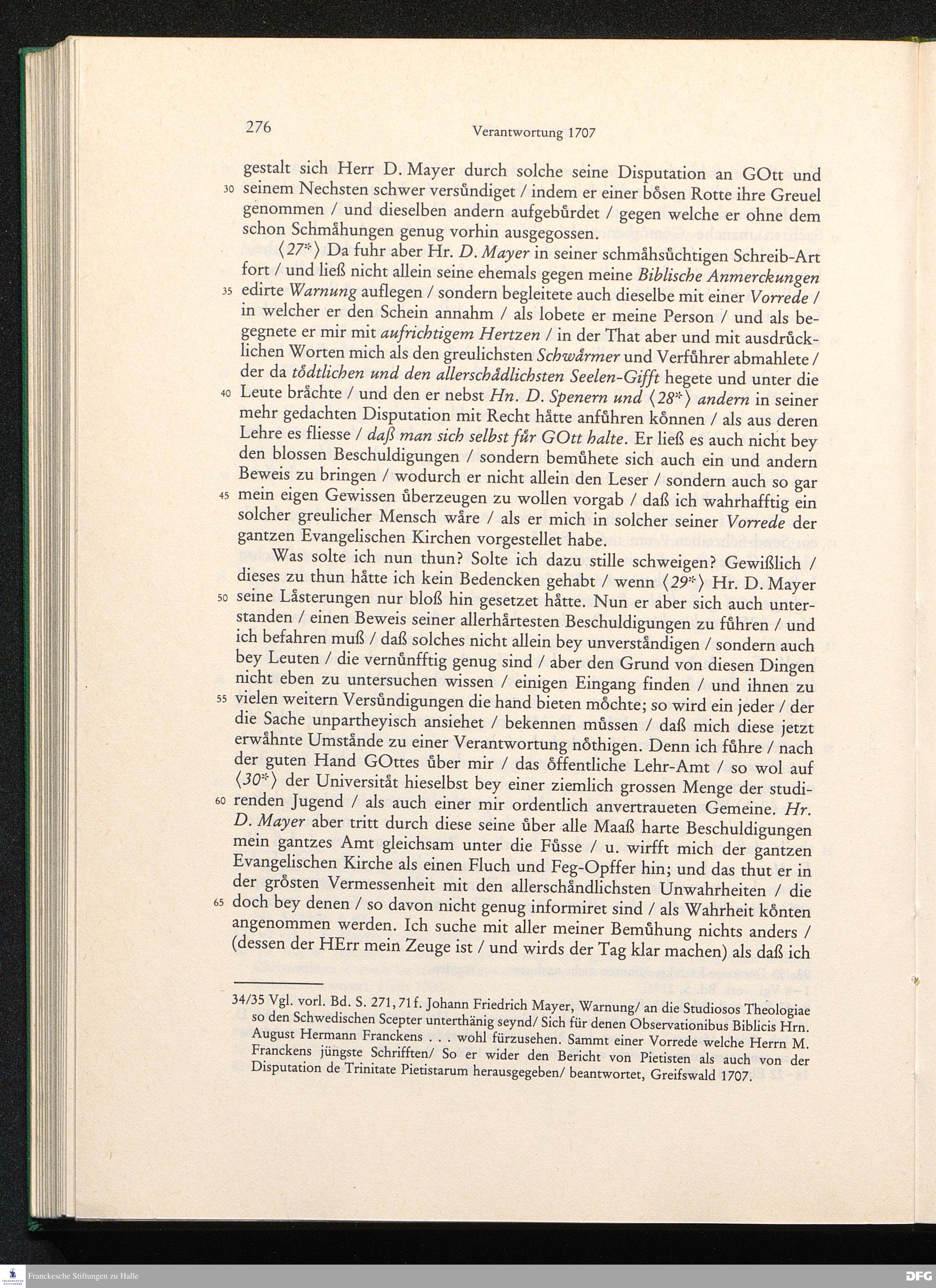 August Hermann Franckens, S. Theol. Prof. zu Halle und Past. zu Glaucha vor Halle, Gründliche und Gewissenhafte Verantwortung gegen Hn. D. Johann Friedrich Mayers, Professoris Theologi auff der Universität zu Greiffswald, harte und unwahrhaffte Beschuldigungen ...