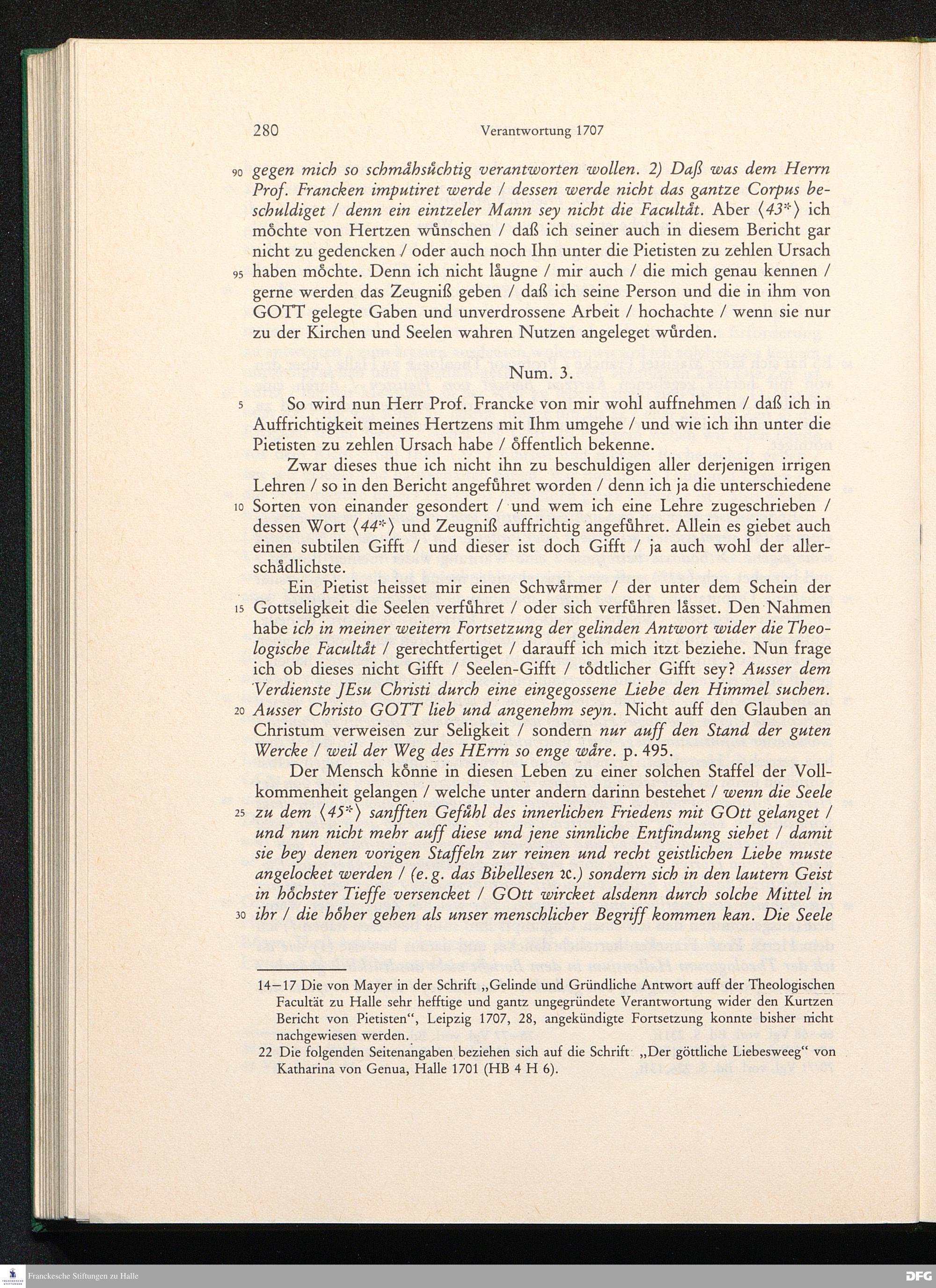 August Hermann Franckens, S. Theol. Prof. zu Halle und Past. zu Glaucha vor Halle, Gründliche und Gewissenhafte Verantwortung gegen Hn. D. Johann Friedrich Mayers, Professoris Theologi auff der Universität zu Greiffswald, harte und unwahrhaffte Beschuldigungen ...