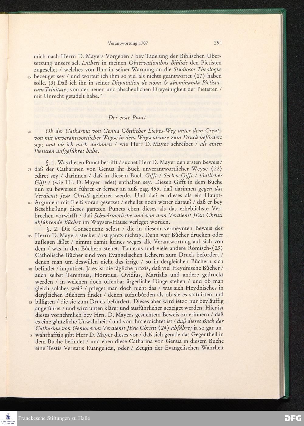 August Hermann Franckens, S. Theol. Prof. zu Halle und Past. zu Glaucha vor Halle, Gründliche und Gewissenhafte Verantwortung gegen Hn. D. Johann Friedrich Mayers, Professoris Theologi auff der Universität zu Greiffswald, harte und unwahrhaffte Beschuldigungen ...