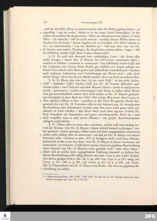 August Hermann Franckens, S. Theol. Prof. zu Halle und Past. zu Glaucha vor Halle, Gründliche und Gewissenhafte Verantwortung gegen Hn. D. Johann Friedrich Mayers, Professoris Theologi auff der Universität zu Greiffswald, harte und unwahrhaffte Beschuldigungen ...