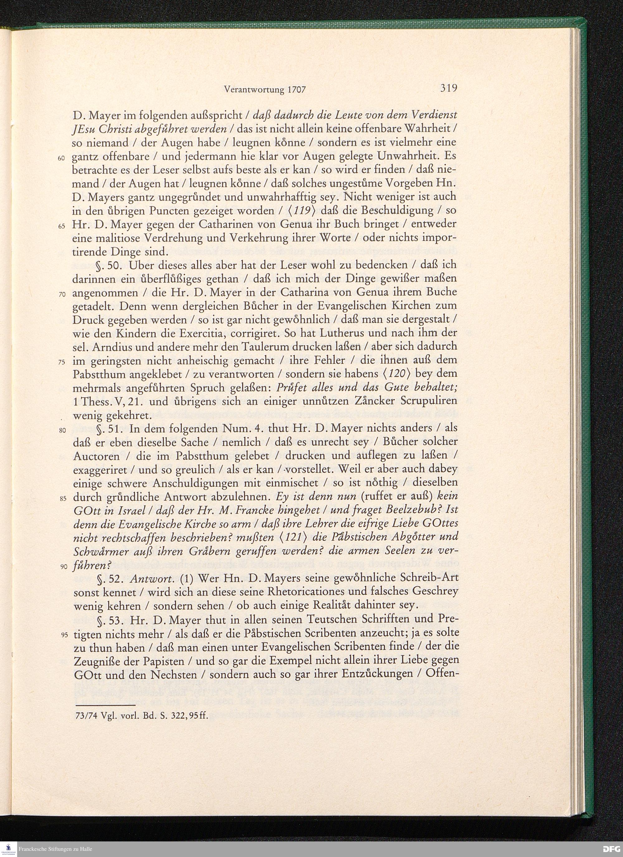 August Hermann Franckens, S. Theol. Prof. zu Halle und Past. zu Glaucha vor Halle, Gründliche und Gewissenhafte Verantwortung gegen Hn. D. Johann Friedrich Mayers, Professoris Theologi auff der Universität zu Greiffswald, harte und unwahrhaffte Beschuldigungen ...